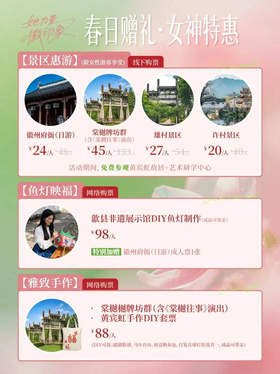 国际劳动妇女节活动 | 歙县5大景区联动特惠,非遗手作深度体验