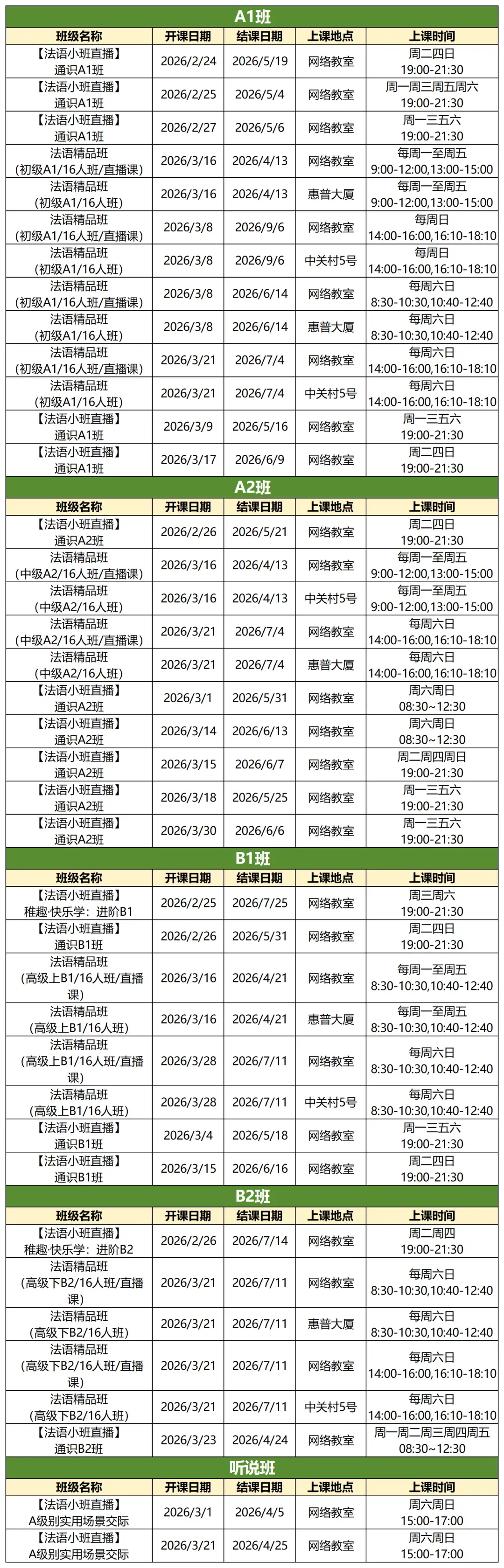 在线咨询 法语 课程排期及优惠