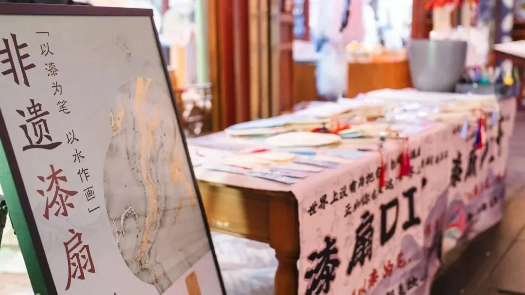 漆扇绘彩一笔一画