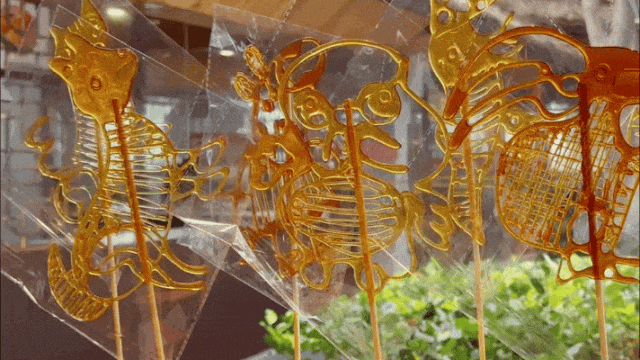 糖画摊前一勺一铲