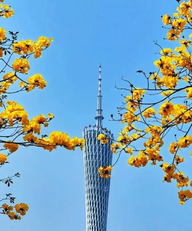 亮点:无叶纯花的金黄花瀑,搭配珠江江景,氛围感拉满