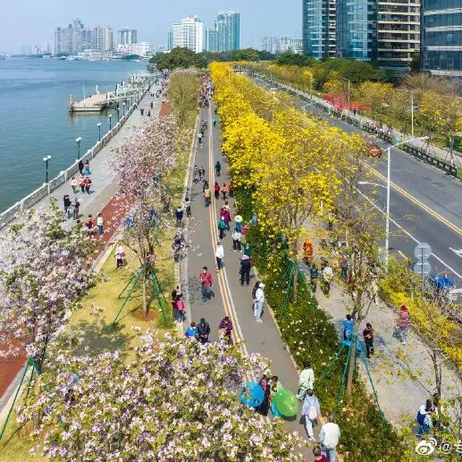 临江黄金大道,黄花风铃木开成治愈系金色海洋。