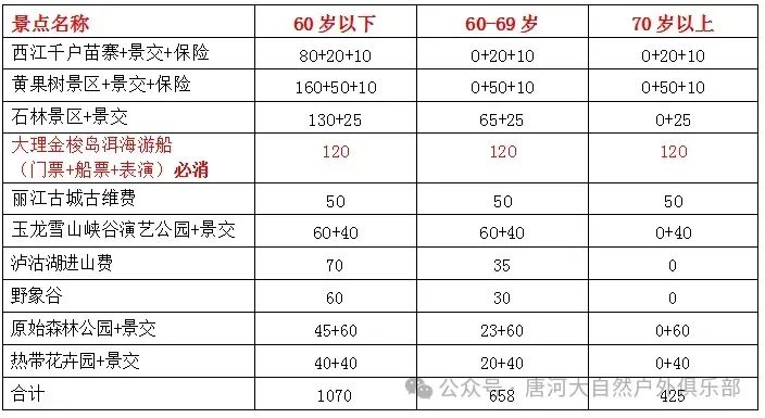 2、附:门票明细表(因景区不同时期门票政策都在调整,以下价格仅供参考,具体以游览当日景区挂牌价为准)