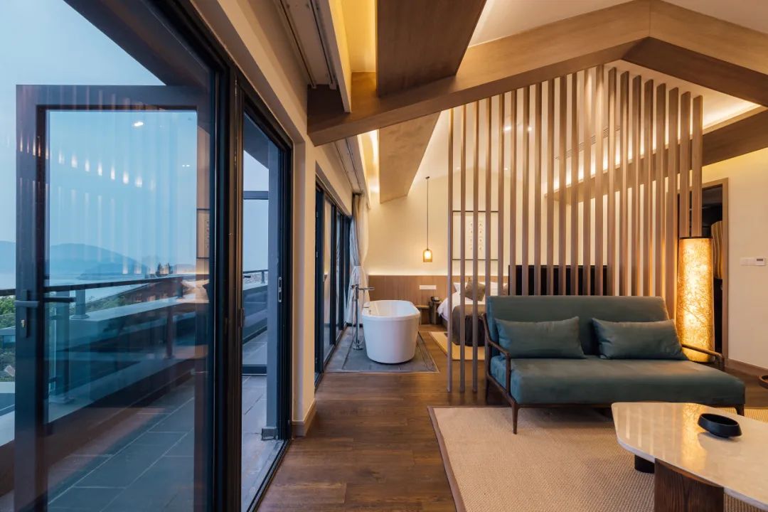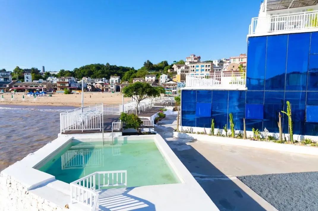 当你踏进这间海上民宿,你将开启一场湛蓝色奇遇:酒店藏身在洞头其中一个岛屿上,独占海岛,一岛一酒店,拥270°海景,悬于70米山间。