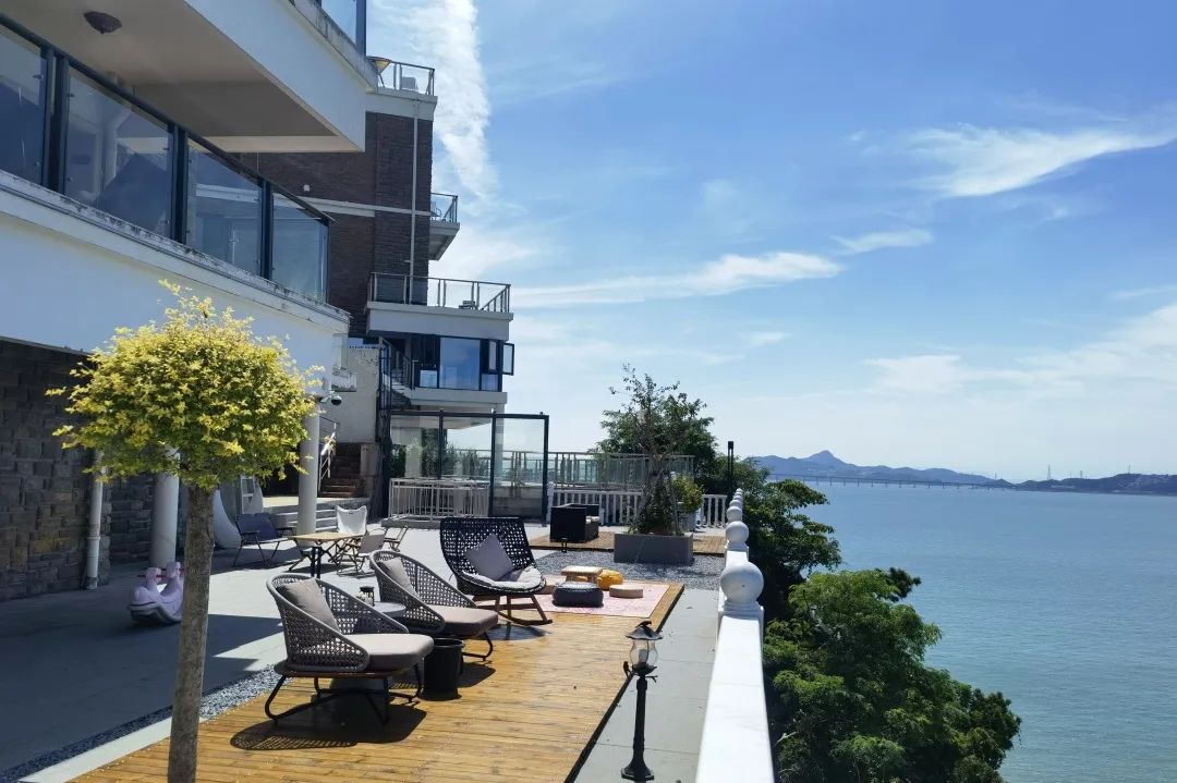 还可以在别墅门前的小庭院烧个烤喝点小酒,或去负三层的庭院里喝喝茶赏赏花,或是坐在阳台上,看看海聊聊天,都是非常惬意的事。