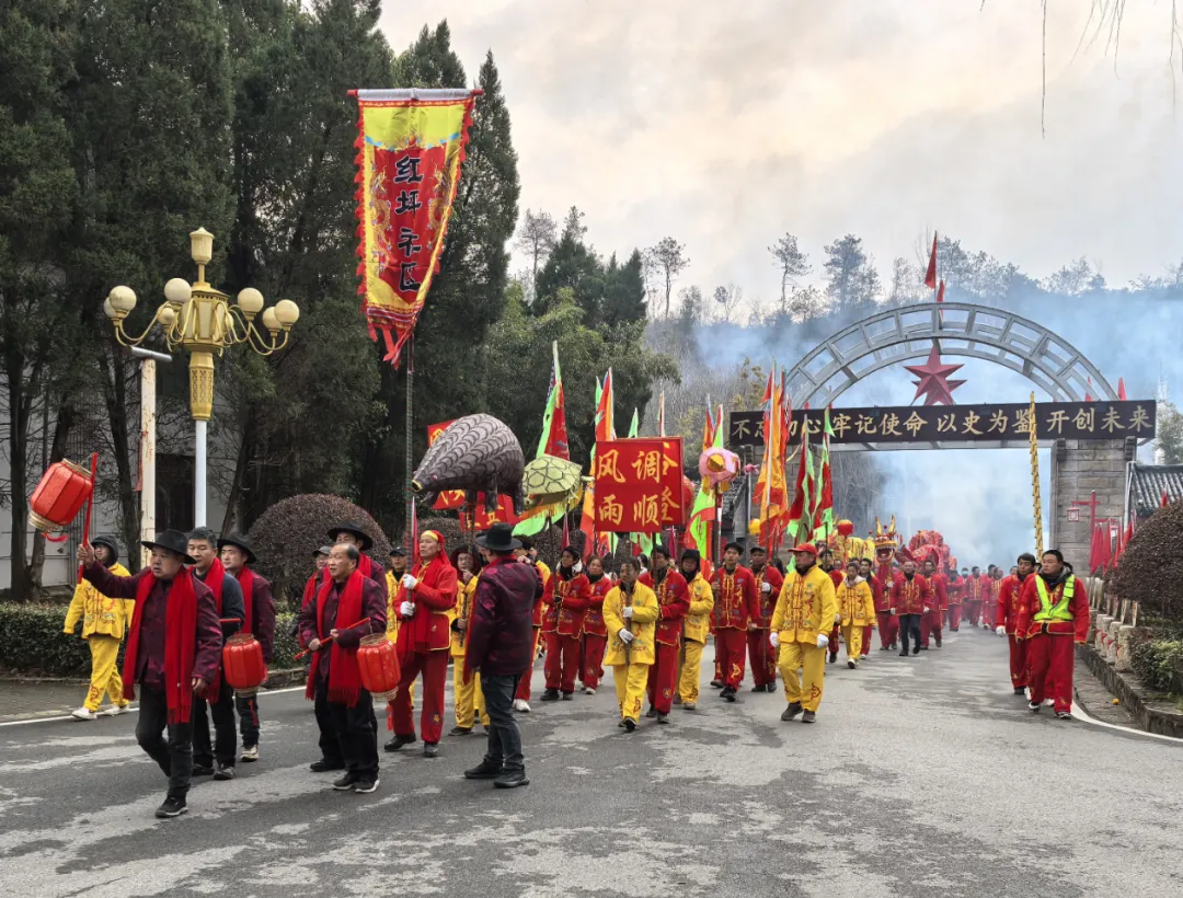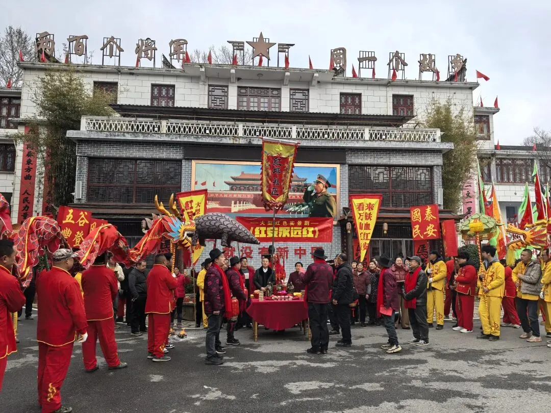 除了舞龙表演,景区还举办了一系列丰富多彩的新春活动。游客们可以品尝当地的美食,欣赏传统的民俗表演,还可以参观红色文化展览,了解这片土地的革命历史。
