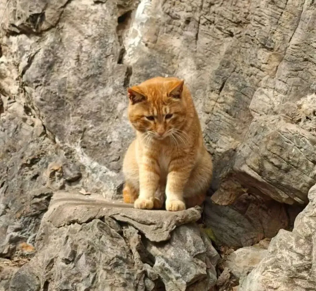 不像城市里的猫警惕敏感,景区的猫大多温和慵懒。你轻轻靠近,它抬眼望你一下,又慢悠悠地闭上眼,仿佛在说:坐吧,这里的风景,分你一半。