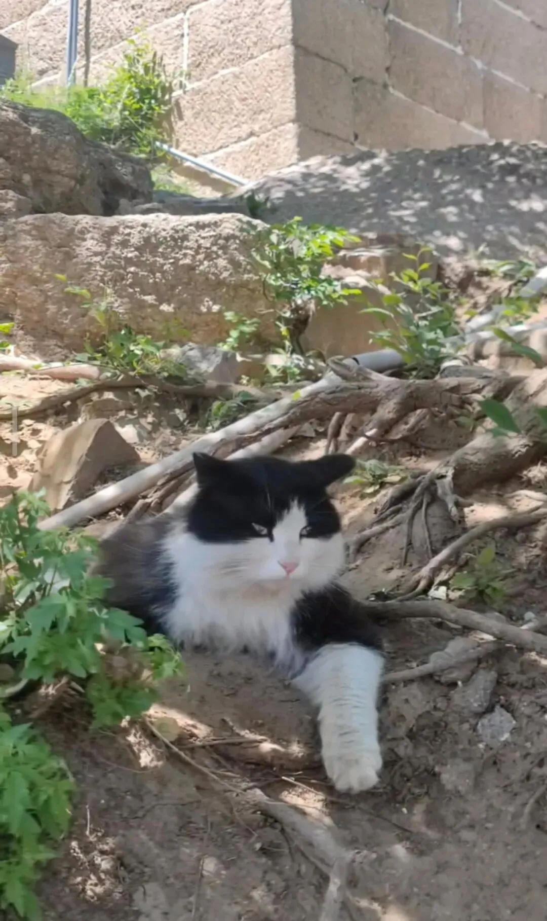 澄子说这两只猫,黑色那只像是黄色那只的影子。我一看,还真是,它们的身形几乎一般大小,连伸懒腰的弧度都如出一辙;黄猫往石阶上挪一步,黑猫便亦步亦趋地跟一步,亲昵得像是阳光下分不开的形和影,别有生趣。本是奔着千年石窟而来,我们却愣是在这处角落,对着两只猫看了半个钟头。