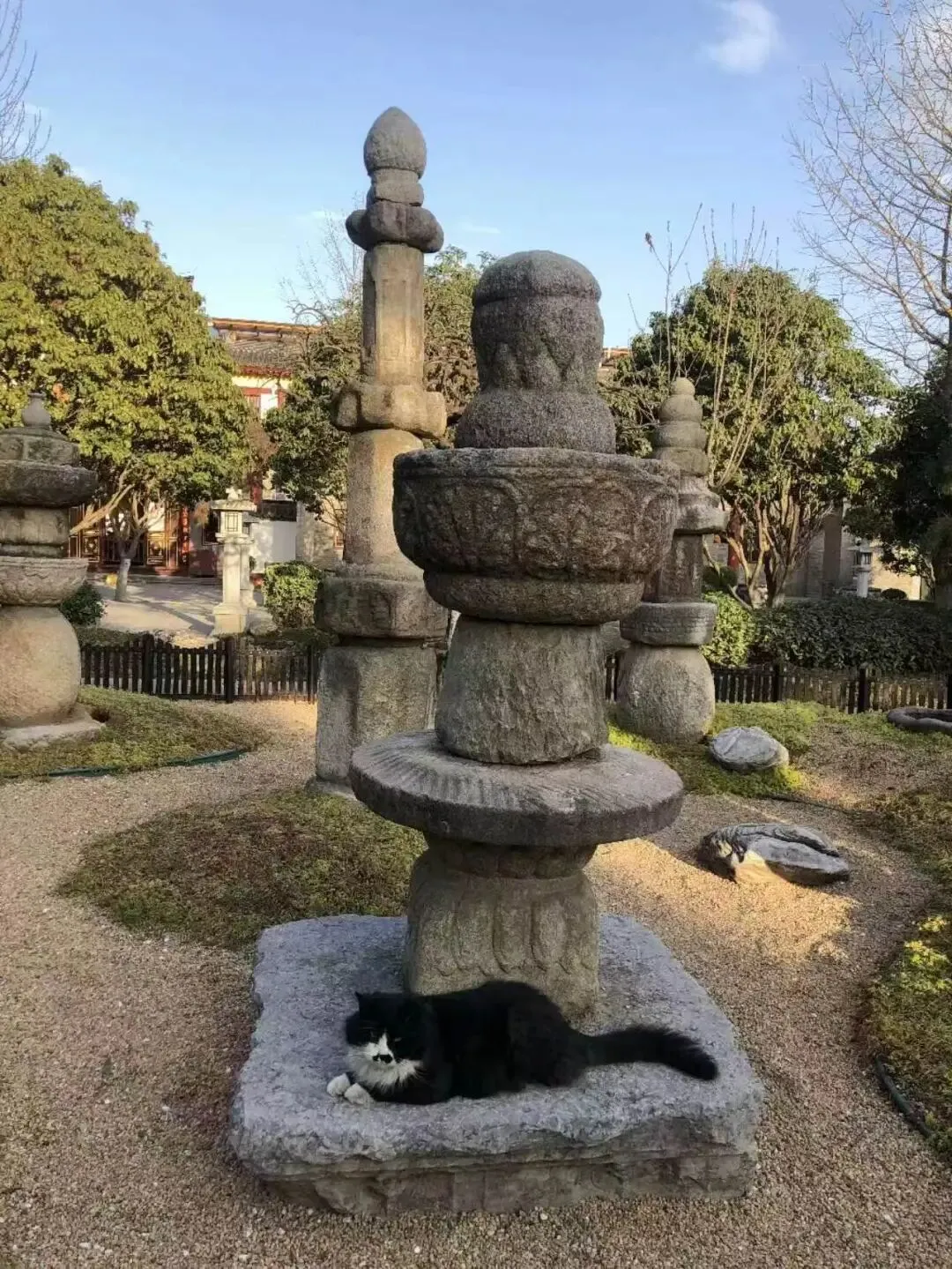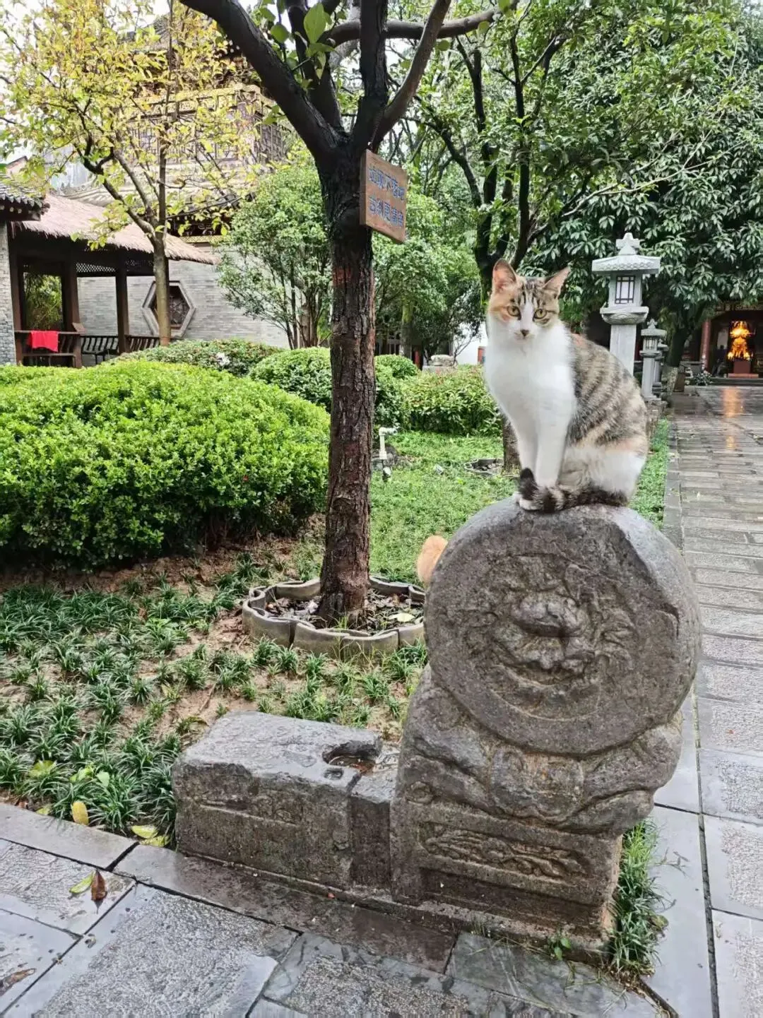 其实,你会发现,不管是远郊山峦间的古寺,还是热闹街巷里的园林,但凡是叫得上名字的景区,总能撞见喵星人出没。它们或是蜷在斑驳的石阶上打盹,或是蹲在飞翘的屋檐下舔爪,或是溜进古柏的浓荫里散步,不疾不徐,自成一道别样的风景线。