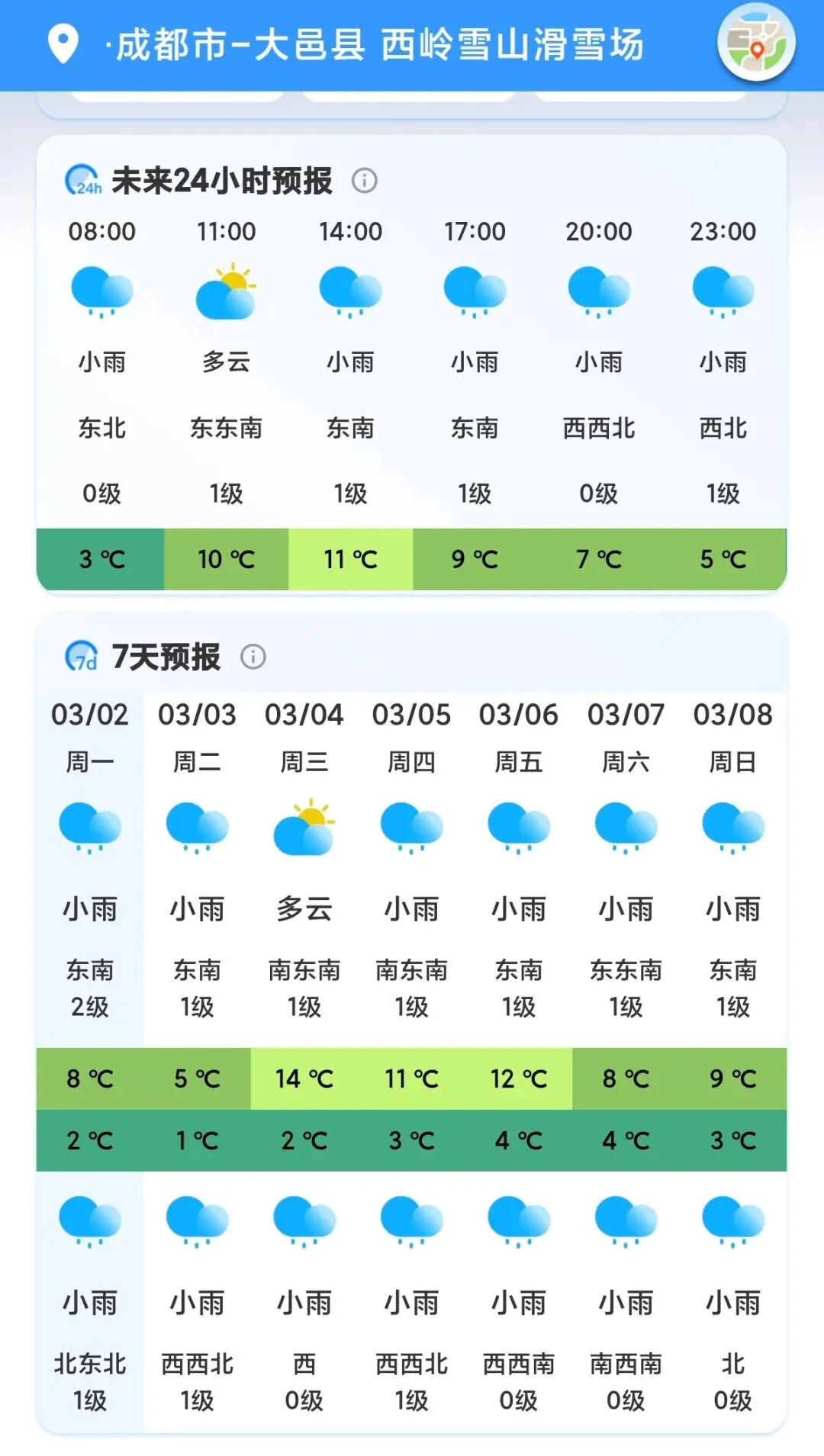 西岭雪山景区3月3日(元宵节)气象预报