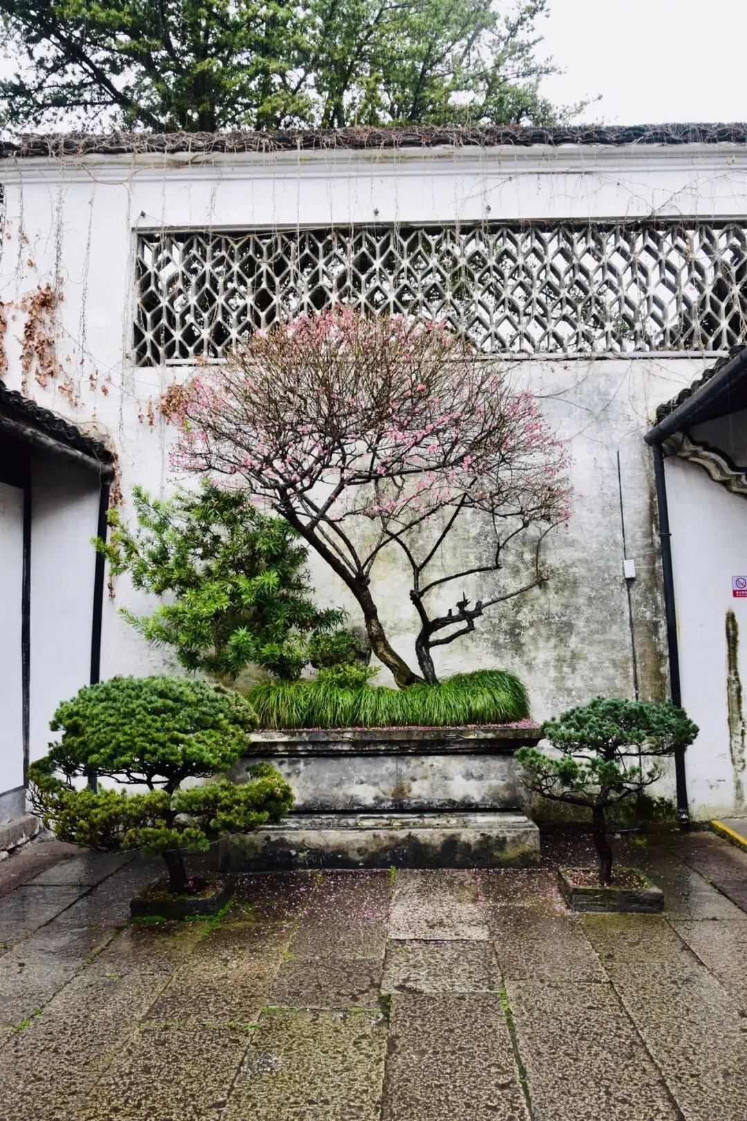 最意外的是看到偏安一隅的一株红梅,以白色的照壁和镂空的花窗为背景,静静开放。这是我在鲁迅故里景点发现的最美的风景!