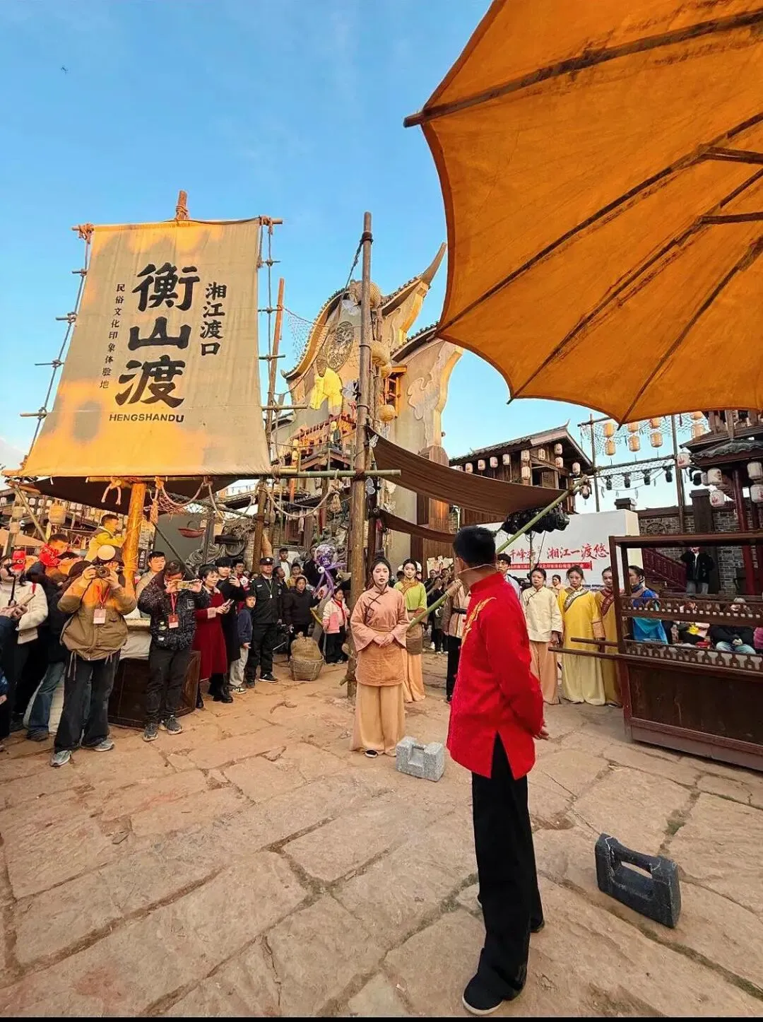 游玩结束,前往千年古渡:衡山渡,那个在湘江边静默了千年的古老渡口,如今竟成为了年轻人争相打卡的文旅新宠。穿梭于特色小吃摊位之间,选购各式各样的文创产品,感受浓厚的市井气息。而 昼夜活动与氛围营造,夜幕降临时,一场精彩的光影秀在湘江水面上演,灯光与水面交相辉映,将整个渡口装点成一个梦幻般的舞台, 营造出一种梦幻般的氛围,营造出梦幻且热闹的氛围。