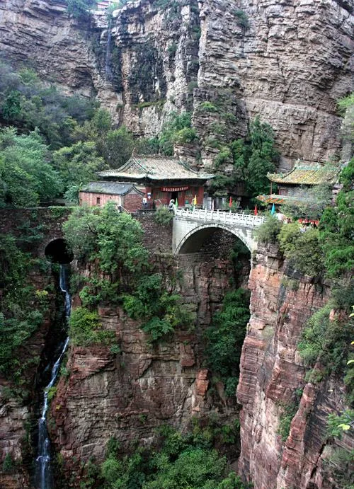 苍岩山的名气比封龙山大,因为那个桥楼殿,一座桥横跨在两座山峰之间,桥上还建了座楼,这个设计放在现在也算大胆,放在古代更是少见。很多人去苍岩山就是为了看这座桥,但你要真走到桥上,会发现这座桥的意义不在于它有多险,而在于它让你重新理解了什么叫"合理"。
