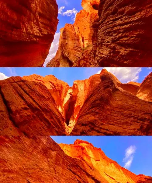 天山神秘大峡谷这个地方严格说不在乌什境内,但从乌什过去很方便,而且它能和乌什这些景点形成一个对比,让你看到同一个地理单元里不同的表达方式。峡谷是典型的丹霞地貌,红色的岩壁,窄窄的通道,阳光照进来的时候整个峡谷都在发光。