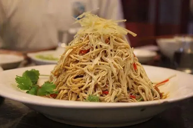 泰州早茶的灵魂!师傅用“月牙刀”将豆干横削20多层,切出的丝细如发、薄如纸。无论是高汤煮还是酱油烫,入口都鲜嫩爽滑,豆香浓郁。清淡又营养,一口下去,满嘴都是里下河特有的细腻与温润,绝了!