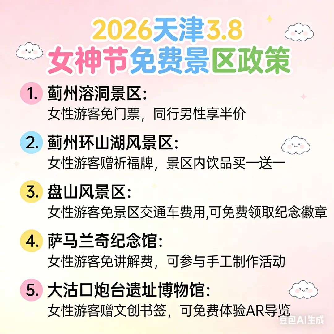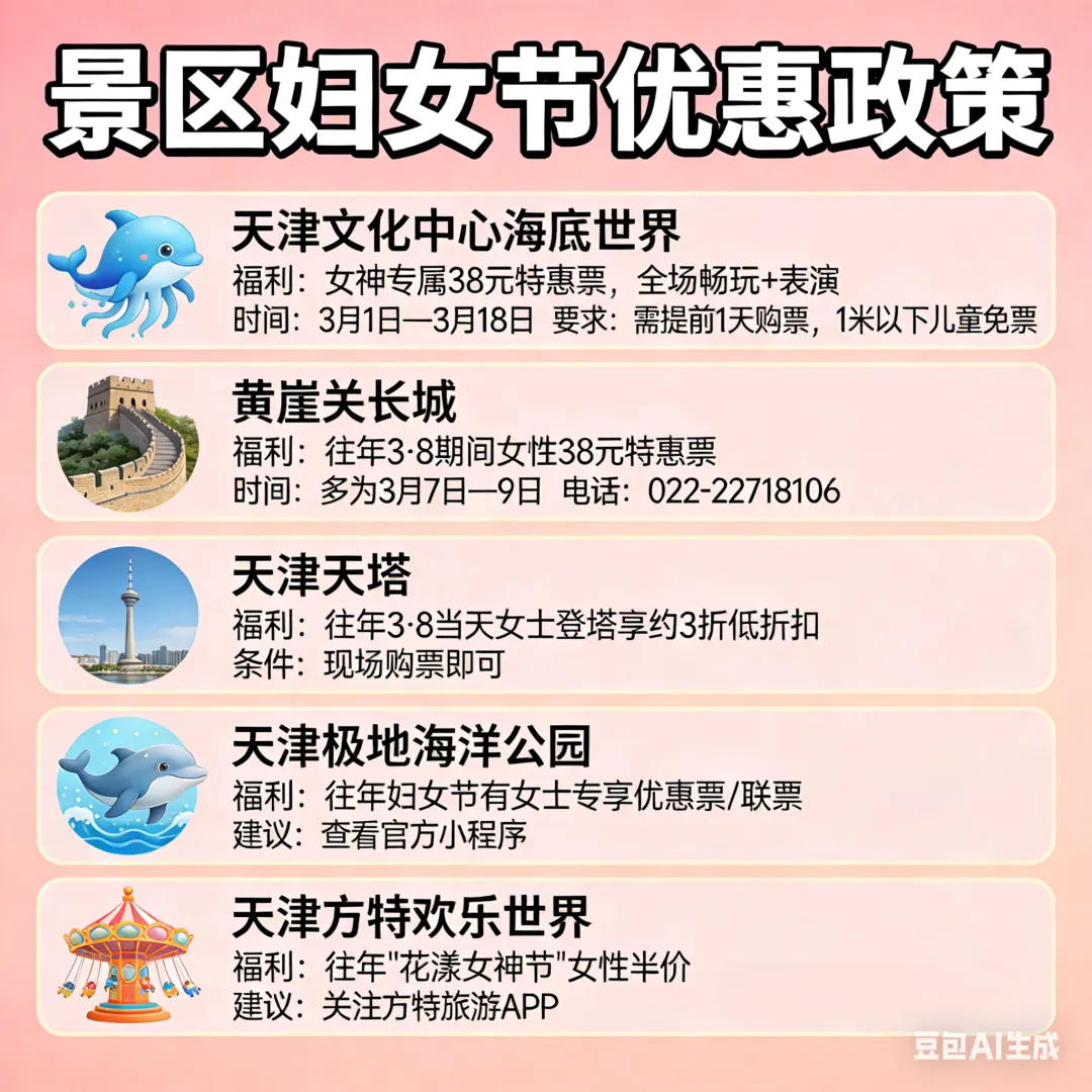 2026天津「3·8女神节」景区优惠全指南|免费畅玩+特惠购票,周末出游必看!
