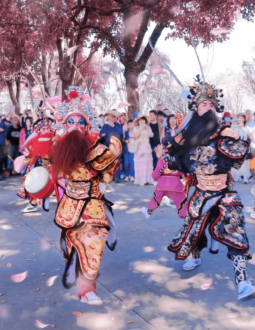 更绝的是,火遍全球的 “非遗英歌舞” 会在樱花林中铿锵起舞