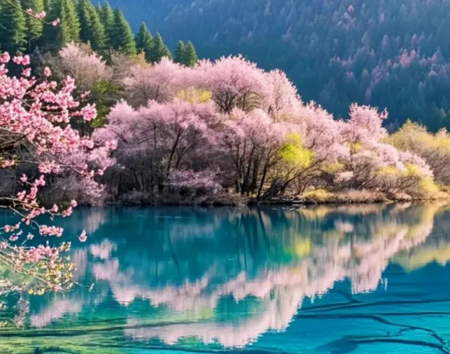 ①九寨沟:早7:30前入园避开人流,优先走日则沟(箭竹海→五花海→珍珠滩瀑布),春日海子解冻泛蓝,残雪映绿植超出片,诺日朗中心可自带零食野餐
