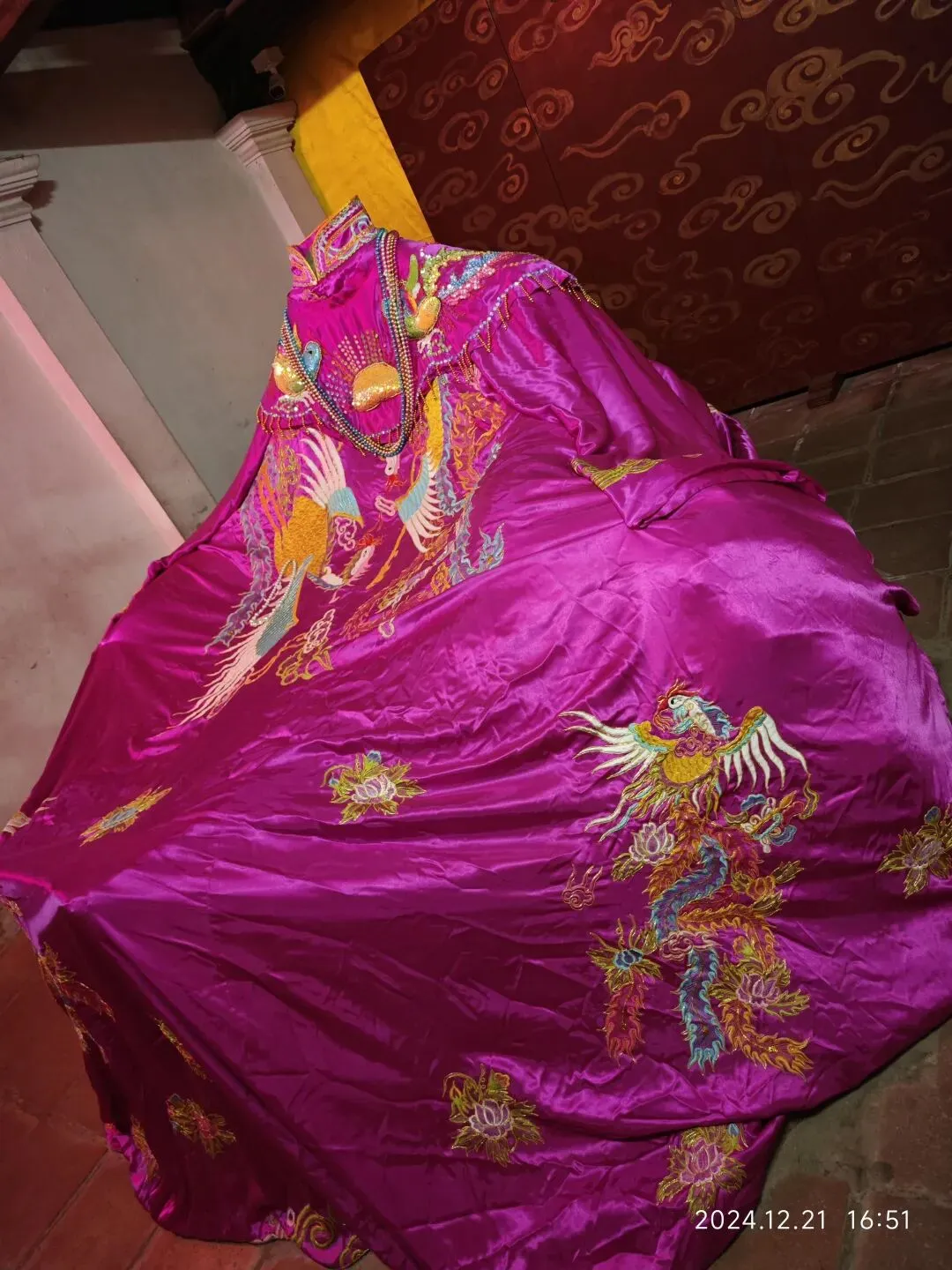 曾经Nhân跟我说,这是Mỵ Châu(媚珠)的衣服。现藏于古螺城内院一间小小的房间里,仅可隔着镶着木棍的小窗户观赏。 既然是女神的衣服,那我肯定不能放过这个镜头哇。Nhân不敢拍照,怕女神半夜来找他。😄😄 ②Làng gốm Bát Tràng(钵场陶瓷村) 在我刚来河内留学交换那段日子,我的越南老师们给我介绍过Bát Tràng(钵场)这个地方----一个以盛产陶瓷而闻名越南全国的小村子。 Bát Tràng(钵场),位于sông Hồng(红河)东岸河内与兴安交界处不远的地方,多走几步就可以从河内市进入兴安省。 当我进村儿后,我看到的景象,却让我感到非常地xui xẻo(晦气)。村里有不少店铺,专卖陶瓷。一般陶瓷这东西,常见的就是瓷碗、瓷盘、瓷花瓶、瓷砖、瓷瓦、陶盆、陶罐、陶壶等。 但在陶瓷村,我看见许多店门口都摆着陶瓷做的棺材状的骨灰盒。在越南,我见着的那玩意儿基本都不小,至少都是一米长、半米宽的。我纳闷儿,一个人化成灰也不过一小捧,用得着那么大尺寸的么?但是不火化,那么小的位置又咋放得下?直到前段时间,我的越南同事anh Dưỡng给我科普了越南的丧葬习俗后,我才明白越南有给死者捡骨二次埋葬的传统。 当时,我只想快点离开那个晦气的地方。于是,我就找到了 Bảo tàng gốm Bát Tràng(钵场陶瓷博物馆)。