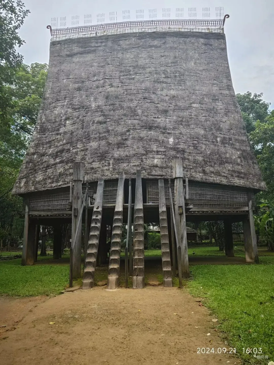 在博物馆的户外展区,我们可以看见仿建的Tây Nguyên(西原)地区少数民族dân tộc Ê Đê(埃地族)的传统民居---- nhà dài (长屋),和dân tộc Gia Rai (嘉莱族)的传统民居----nhà Rông (隆屋)。