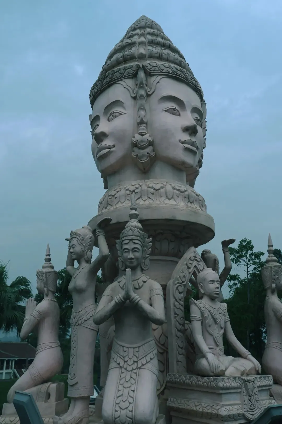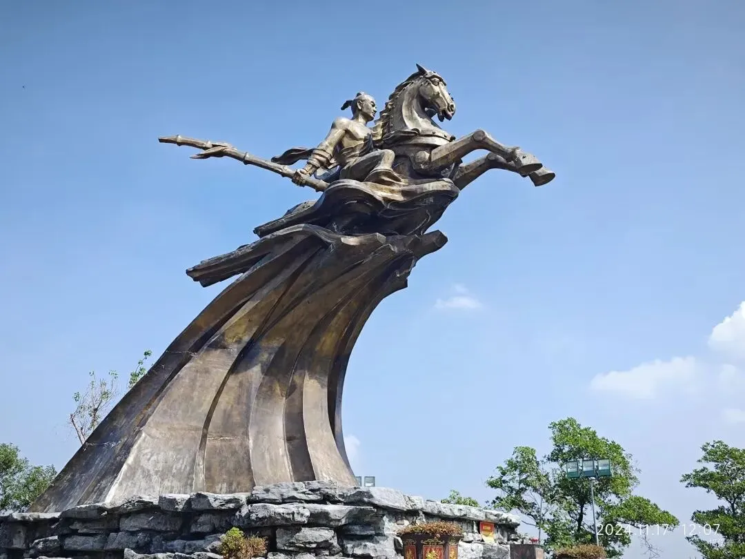 四面佛雕像 在这个民族村里,我们也可以看见部分生活在这里的身着传统服饰的少数民族居民。(其实就是来民族村上班的,但他们确实是少数民族。)对于越南境内人口较少的那些少数民族,尤其是 Tây Nguyên (西原) 地区的少数民族,越南政府为了保护少数民族文化,会招募一些少数民族来到民族文化村里居住,以此宣传少数民族文化。 ⑧Núi Sóc (朔山) Núi Sóc(朔山),位于河内北边的huyện Sóc Sơn (朔山县)。山顶上,有一座铜像,是Thánh Giống(董圣,即“扶董天王”) 骑着骏马英姿飒爽的形象。铜像所在的位置,称为Tường Đài Thánh Giống (董圣雕像台) 。从河内市区到朔山的 Tường Đài Thánh Giống, 约需一个半小时 。 抵达朔山山脚后,想前往雕像所在的位置,有两种方式。 一是骑摩托。这是最快的上山方式。爬朔山的时候是上坡路,如骑摩托前往,需谨慎驾驶,注意弯道。 二是走路上山。这是苦行僧模式上山。有步梯从山脚通往山顶,但是这一路的台阶太多了,有些台阶还坑坑洼洼的,全是凹凼,会很磨脚。