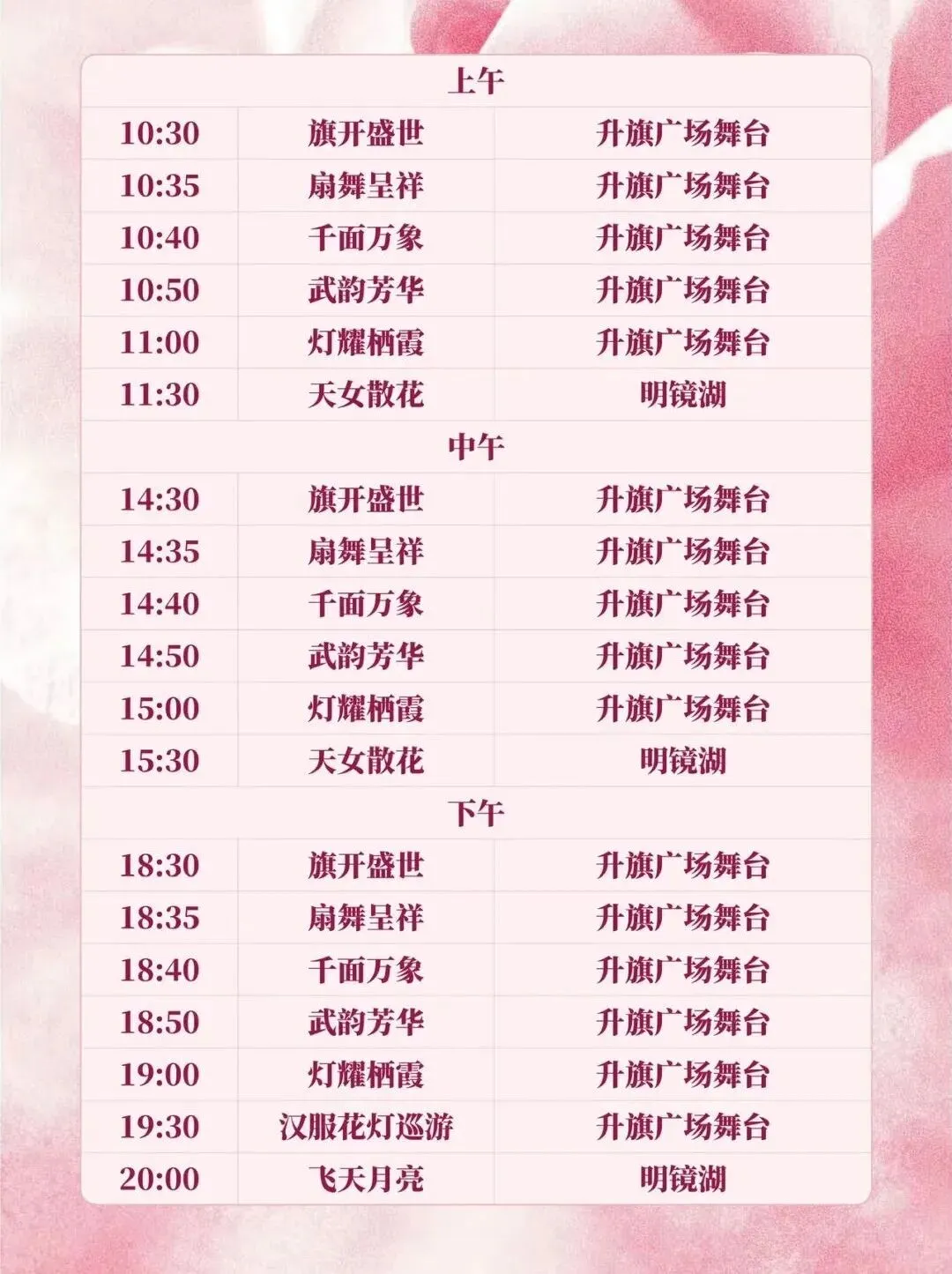 每场后30分钟:景区广场集中表演