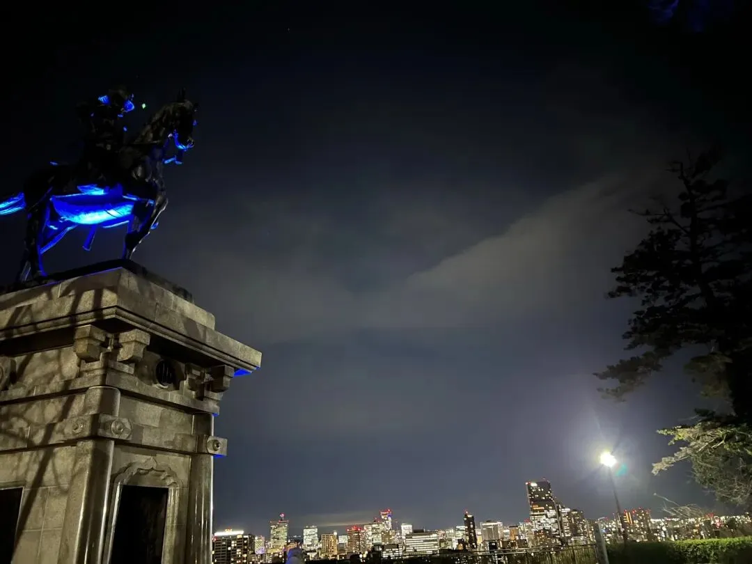 仙台城跡一帶現在是座公園,因此又被稱為青葉山公園,是來到仙台觀光的人的最佳休憩處所。從城堡的核心—本丸城跡不止可以環視仙台市,還可以看到遠方的太平洋。從下午一直到晚上10點,城堡的石牆和伊達政宗的馬騎雕像會點燈,晚上過來又是另一番體會。本丸城跡的「青葉城本丸會館」的餐廳也同樣開到晚上10點,過來這邊欣賞夜景一邊用餐更是一種享受。