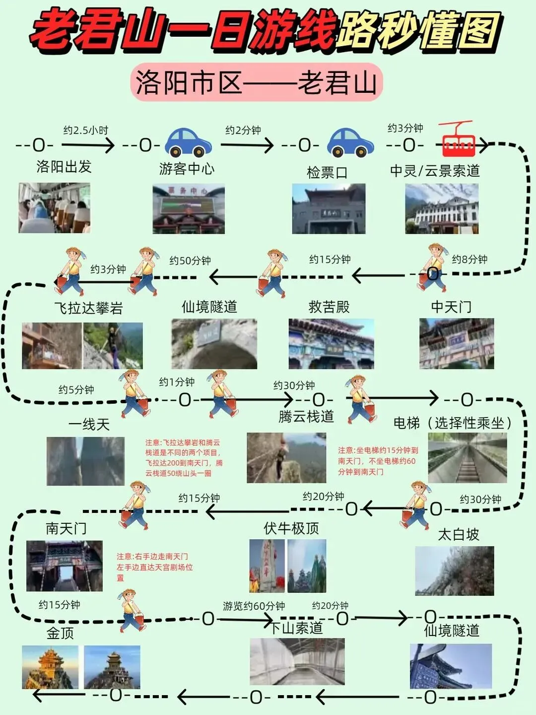 D2:洛阳.→老君山景区(中灵/.云景索道上)→十里.画屏→金顶道观群.(看日.落.夜景)→宿.山顶