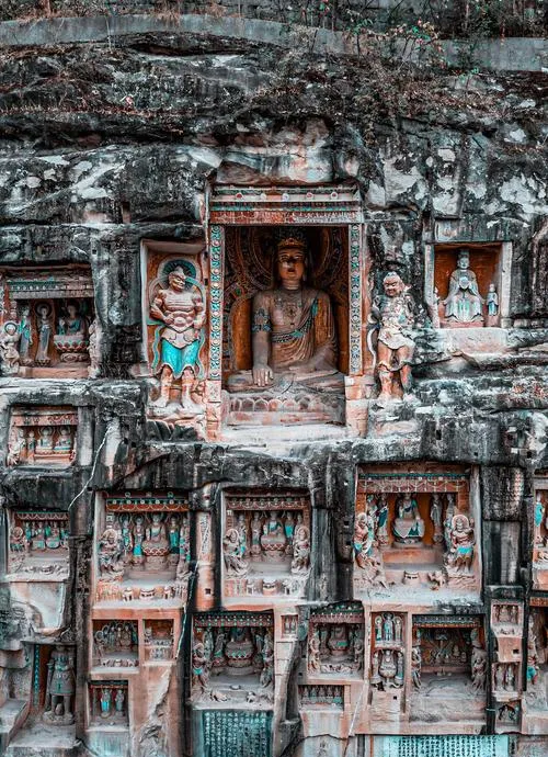 石刻不大,但很密集,一个崖壁上刻了几十个造像,大小不一,说明当时来这刻像的人很多,有钱的刻大的,没钱的刻小的,但都要刻,这说明那个年代的人对信仰的需求是真实的,不是形式化的,是真的觉得刻个造像能保佑自己,这种心态跟现在人去寺庙烧香是一样的,只是表达方式不同。