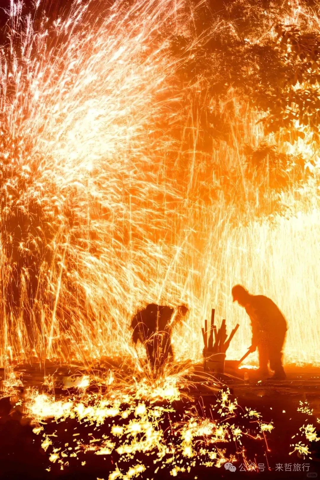 春节期间有元宵民俗表演,上刀山,踩火炭还有打铁花表演,很有节日氛围。