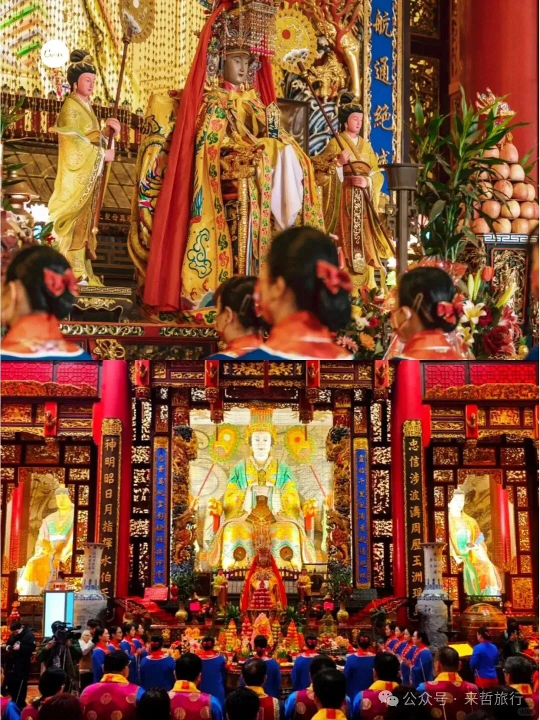 4)跪拜礼:在妈祖像前,行三跪九叩礼,这是清代沿用至今的最高规格礼仪。跪姿要标准,昂首挺胸,全神贯注,不能东张西望或大声喧哗。