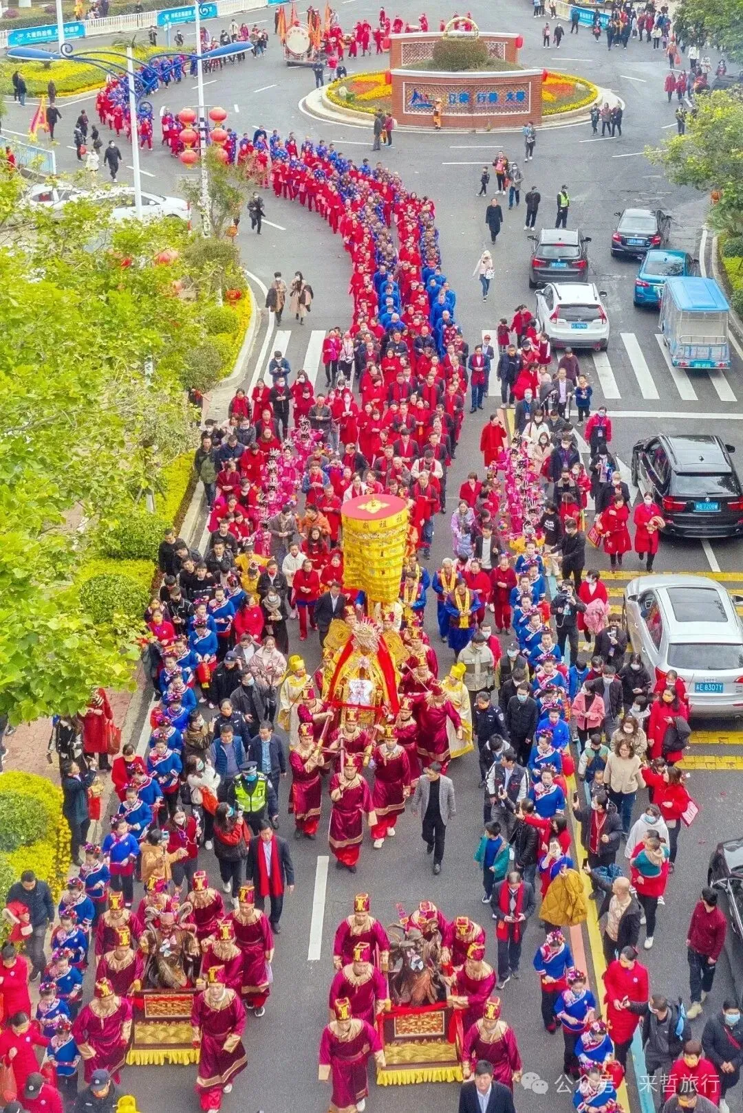 内容:妈祖绕境巡安布福是湄洲岛闹元宵最重要最热闹的活动,从正月初八北埭村文兴宫开启的祖庙请香,到农历十九宫下村上兴宫妈祖回宫,长达12天。岛上14个妈祖宫庙约定俗成,在本家社宫境内绕境巡安、布福万家。