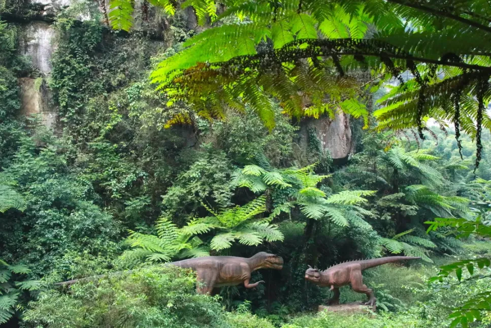 他同时表示:“犍为是‘中国桫椤之乡’,景区内桫椤树超54万株,而桫椤树正是中生代侏罗纪时期植食性恐龙的主要食物来源。”张祥解释:“景区打造侏罗纪探险谷的初衷,就是依托这片植物活化石资源,通过仿真恐龙、化石模型等景观,让游客沉浸式感受远古生态场景。”