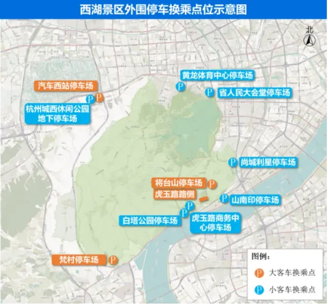 想要打车前往灵隐区域和南山路(杨公堤至玉皇山路段)的游客朋友,请在指定换乘点下车,换乘公交进入。