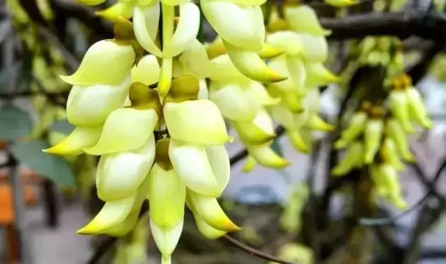 这里的野生禾雀花以绿色为主,花期较长,
