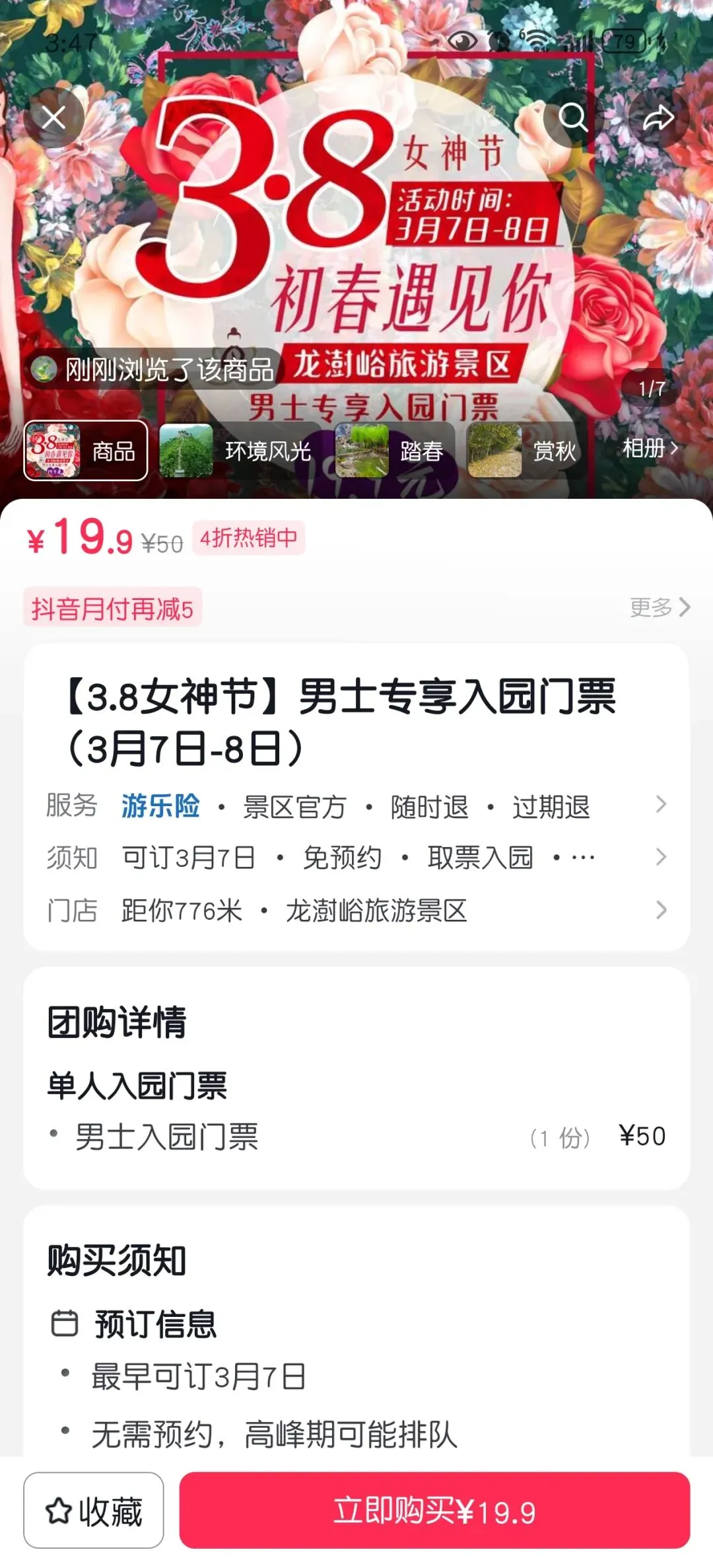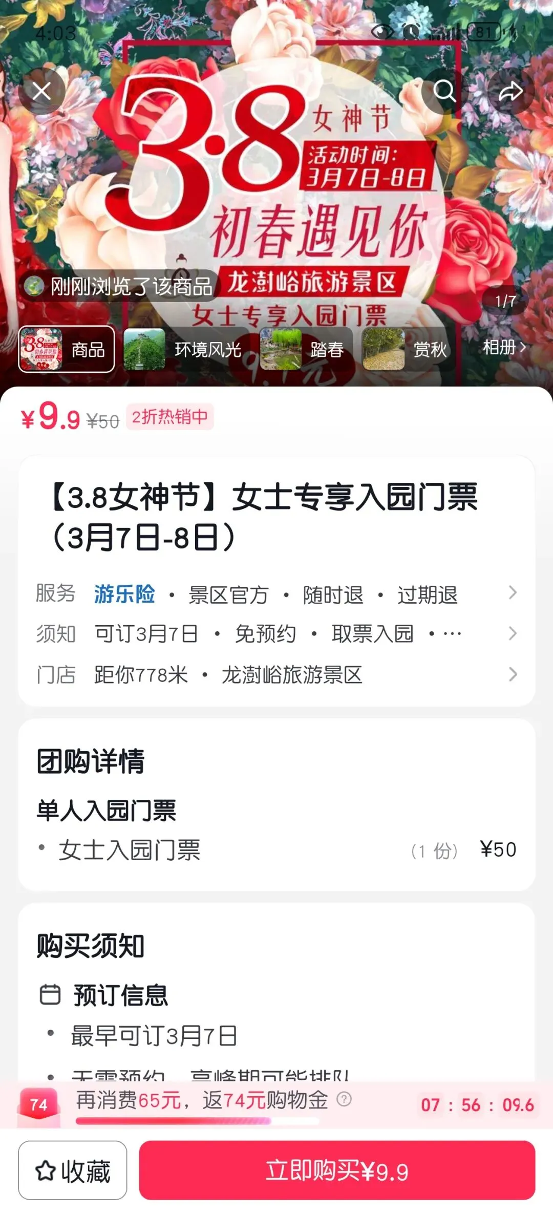 女士专享入园门票9.9元/人
