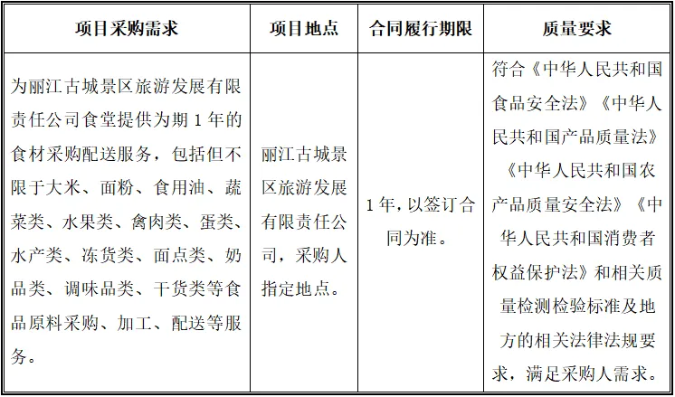丽江古城景区旅游发展有限责任公司2026年食堂食材采购配送服务项目竞争性磋商公告