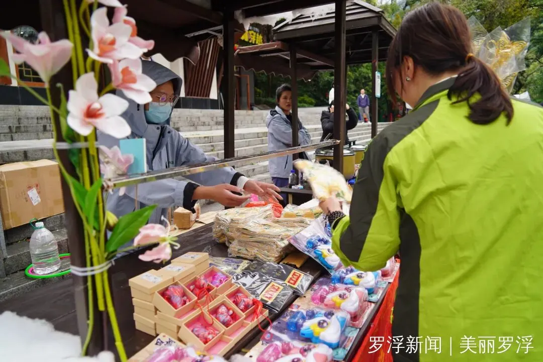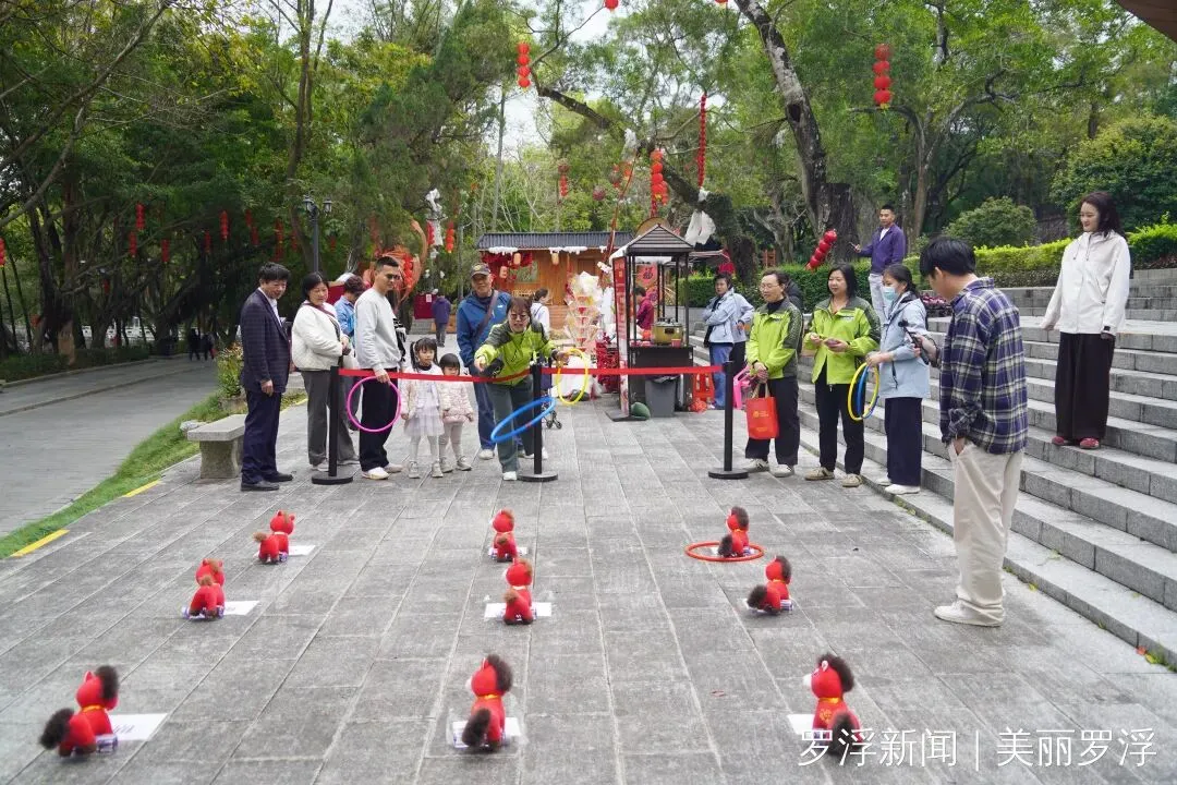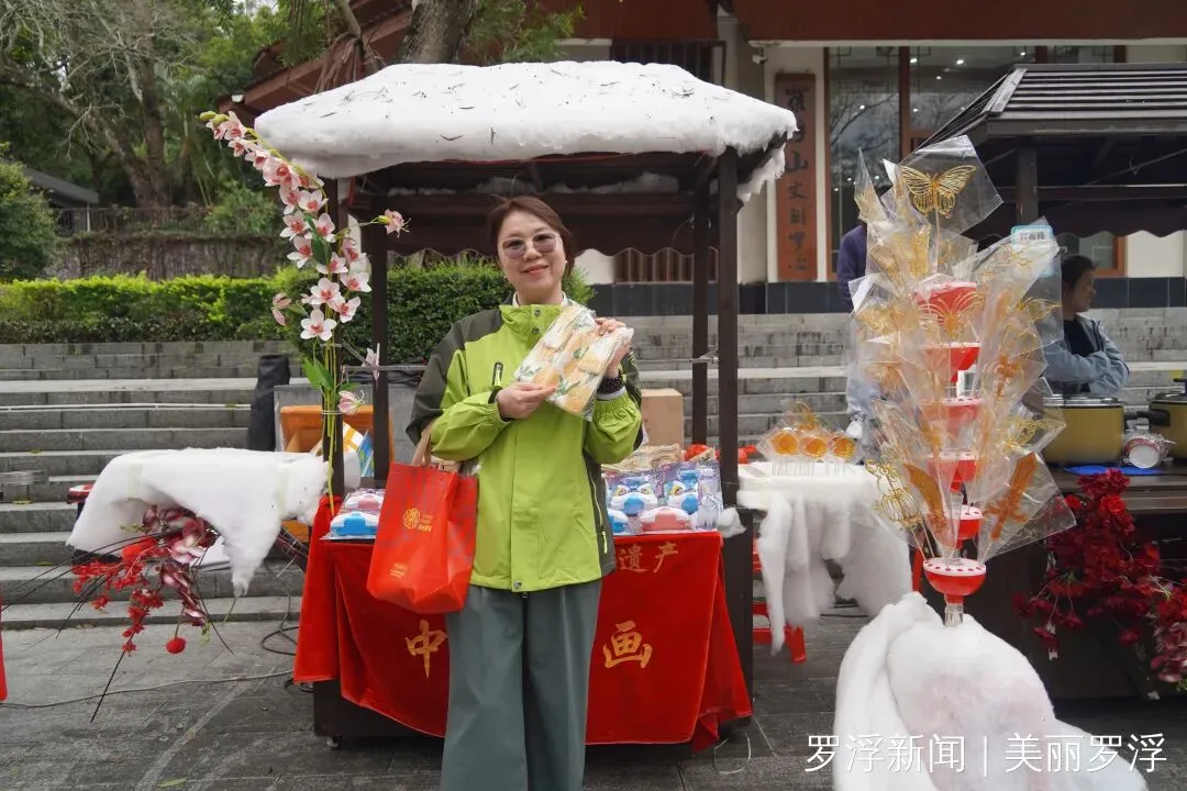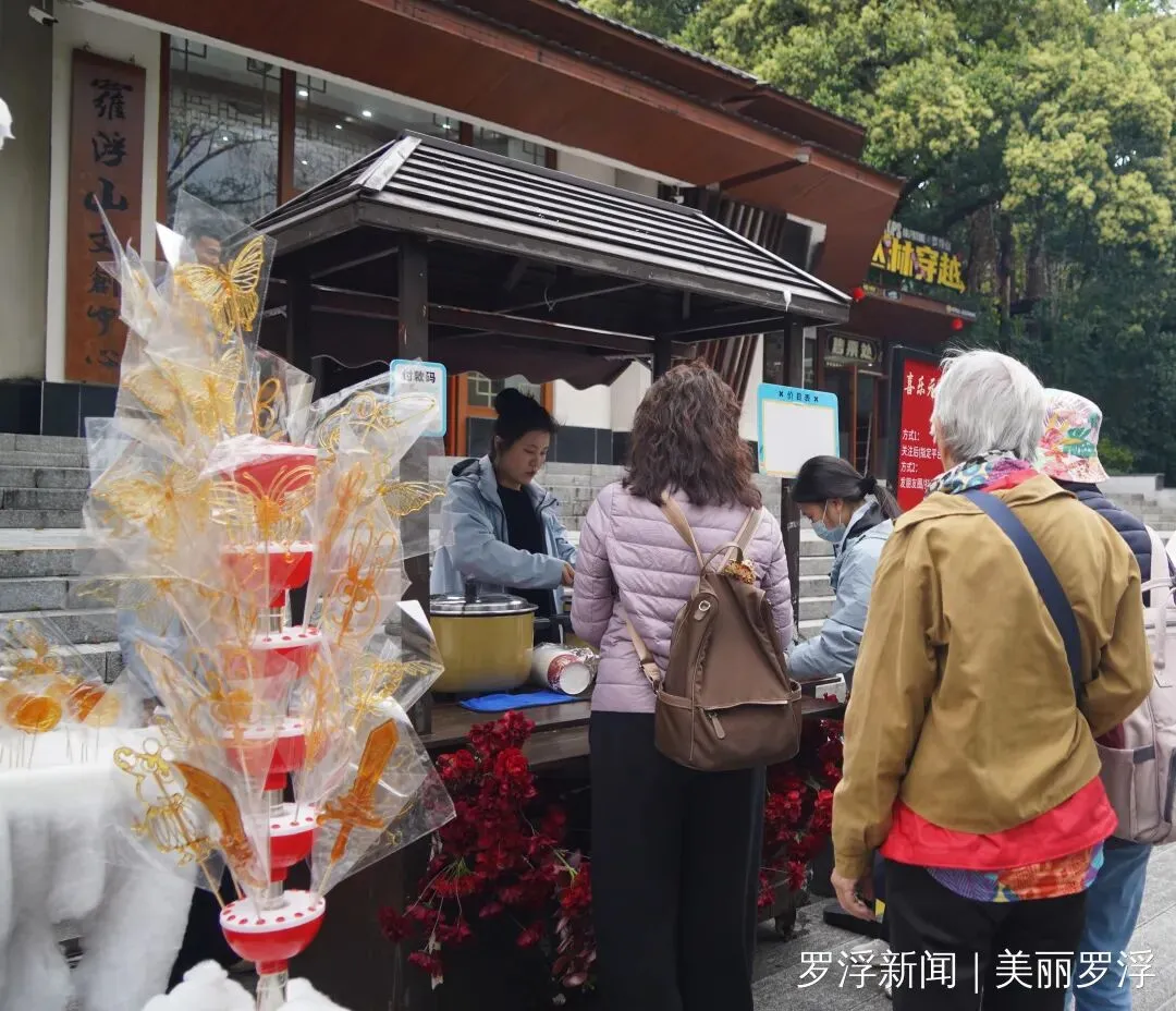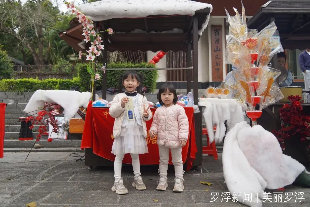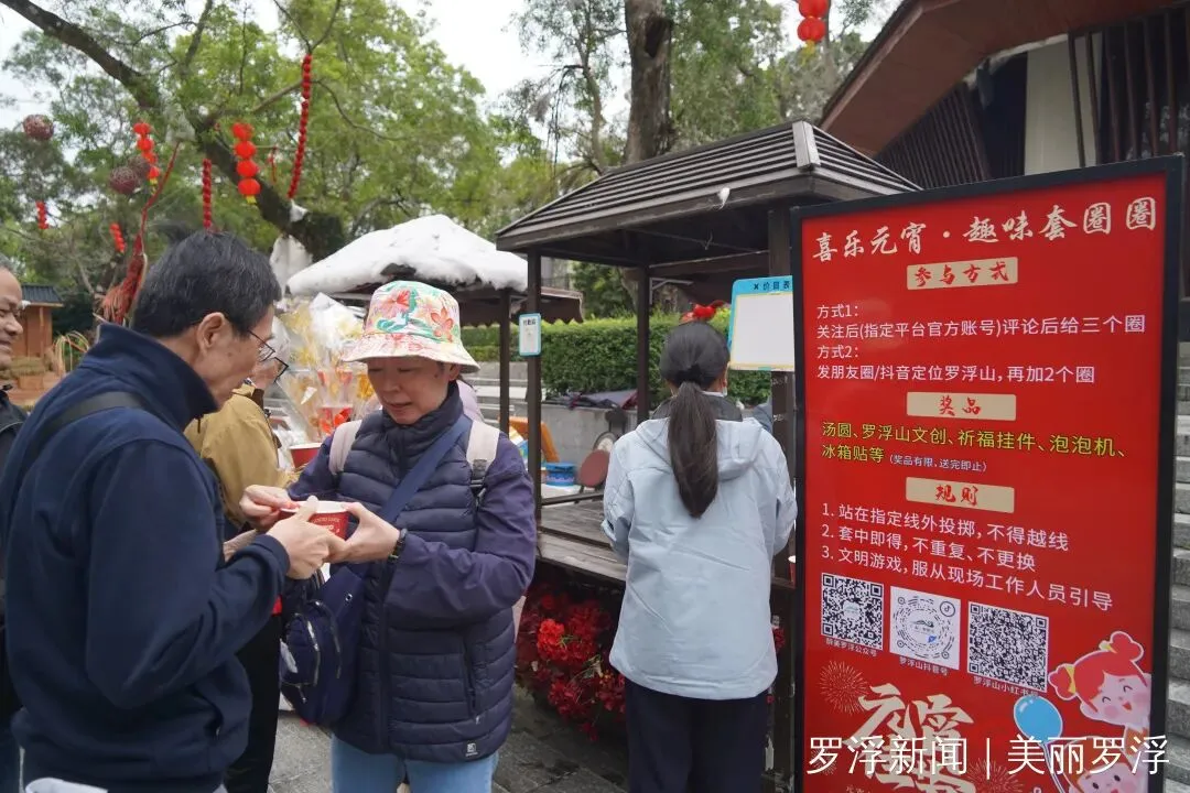 除了舌尖上的享受,现场丰富多彩的互动游戏更是点燃了大家的热情。套圈、糖画制作等体验项目吸引了众多参与者,大家在欢声笑语中一试身手。据工作人员介绍,游客只需关注景区官方账号,并在社交平台发布带有指定话题的动态,即可领取套圈参与挑战,套中即可赢取罗浮山文创产品、祈福挂件、泡泡机、冰箱贴等精美礼品。