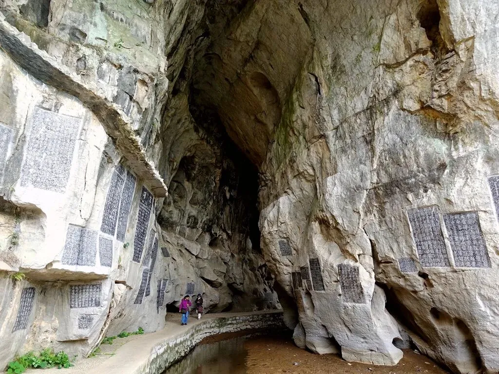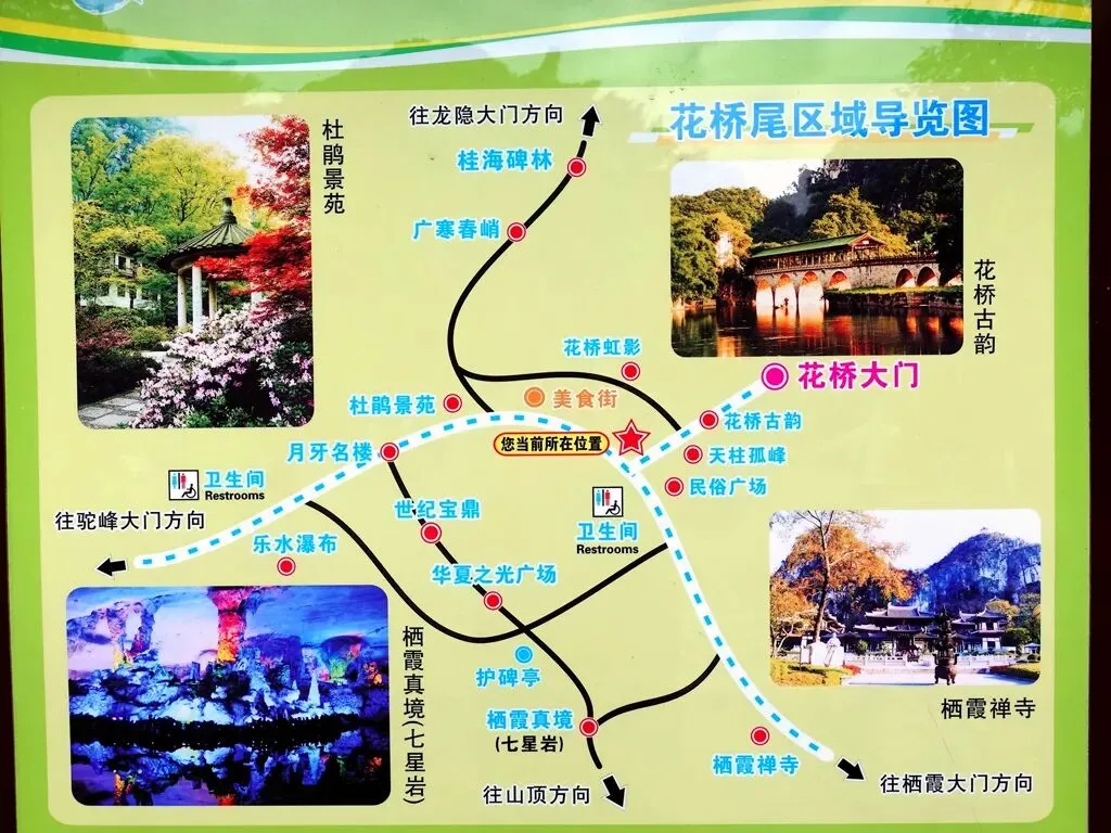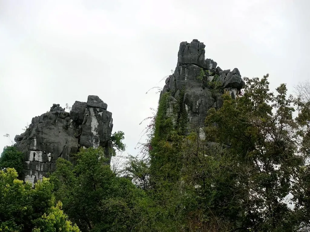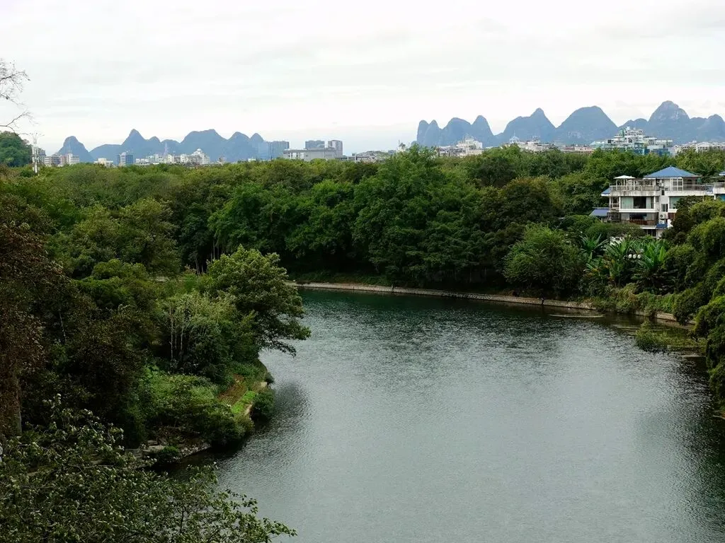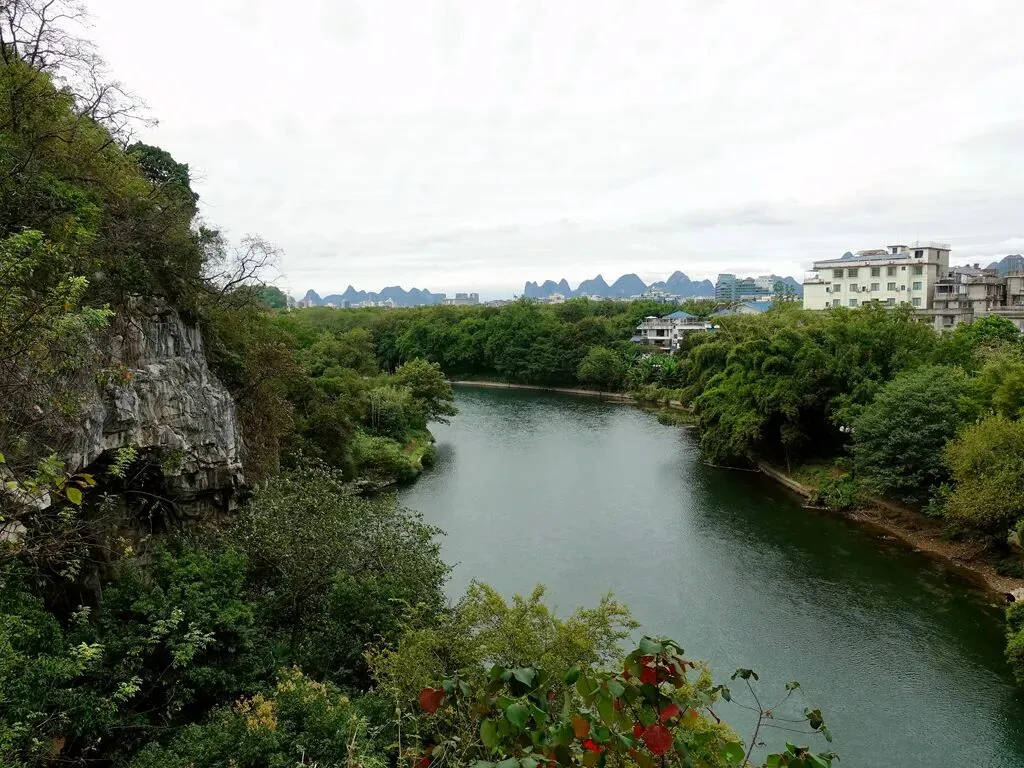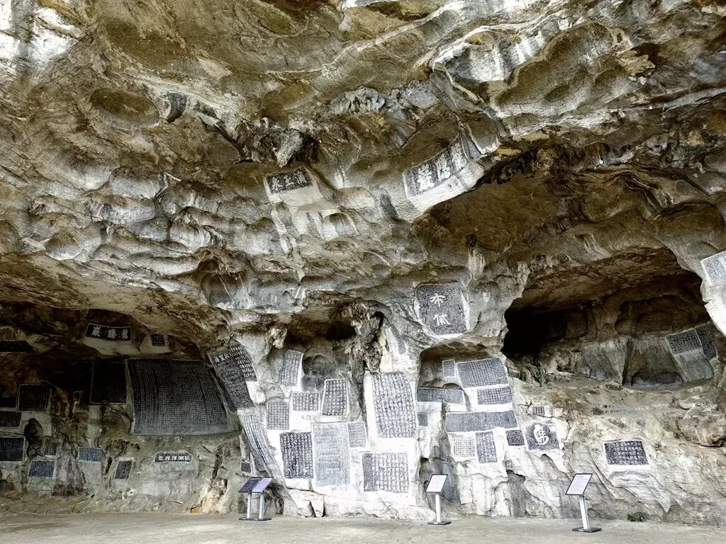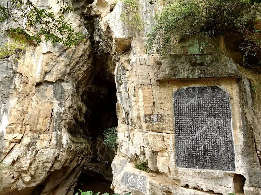 在灵剑溪和小东江交汇处附近,是七星景区的花桥大门,旁边的石柱峰是桂林最小的山,石峰上有株古榕树,故有一树遮一山的奇景。从花桥大门往桂海碑林方向走,经过月牙山麓的台阶,有岔路口可以登顶月牙山,下坡后拐弯突然看到龙隐洞,相传千年潜龙曾隐居于此,一朝破壁而飞入云霄,洞顶的石槽酷似腾龙留下的痕迹,洞壁上的众多碑文更是让人惊叹。桂海碑林位于月牙山西南麓的山体凹陷处,汇聚了大量的碑文题刻。自隋至清共有石刻220余方,是桂林摩崖石刻最多最全的地方。 正所谓:汉碑看山东,唐碑看西安,宋碑看桂林。若是有喜欢书法、碑文和诗词的人来此,定会觉得无比美妙。