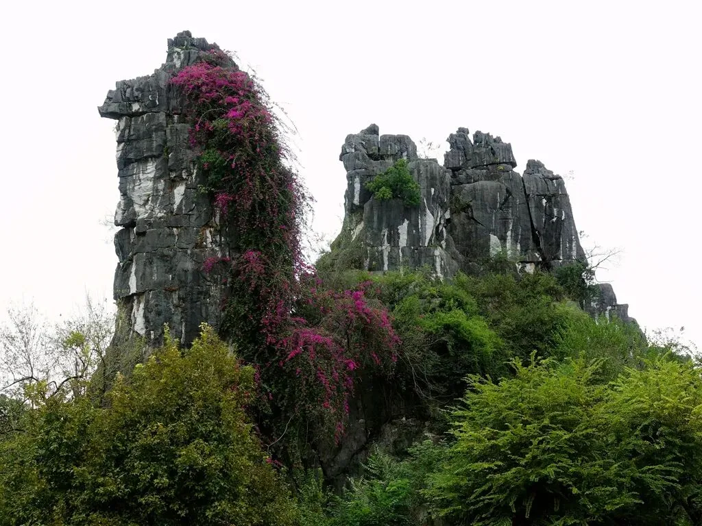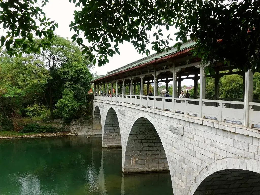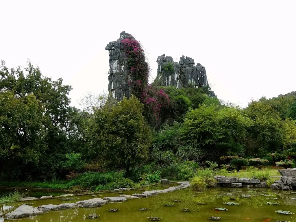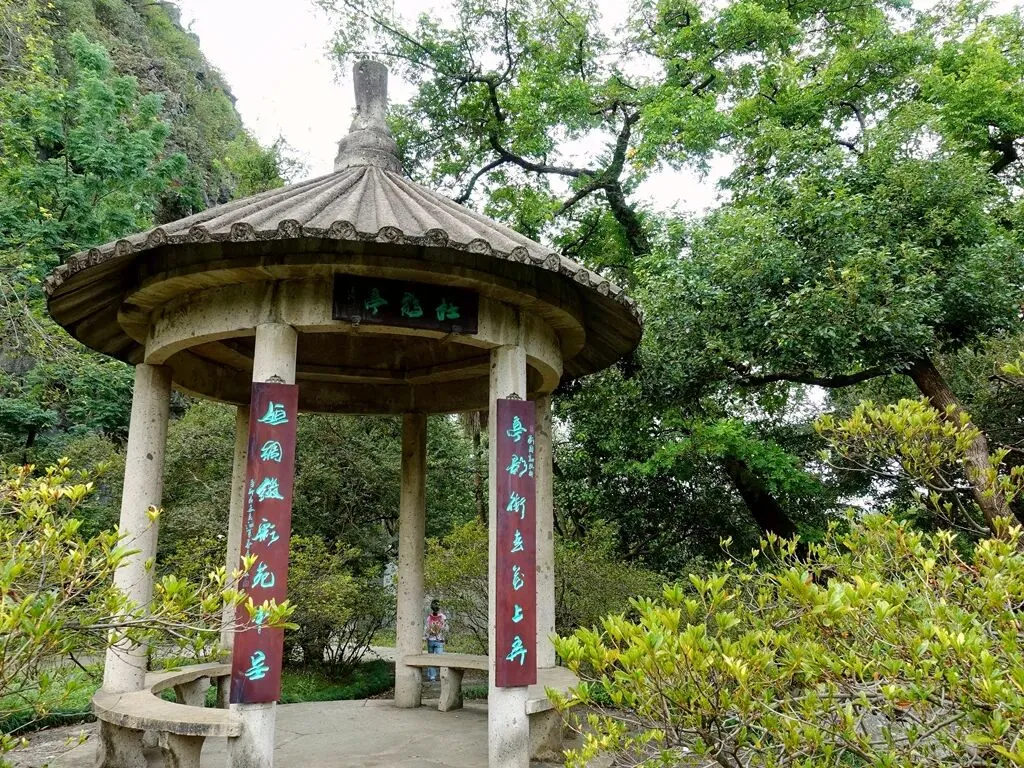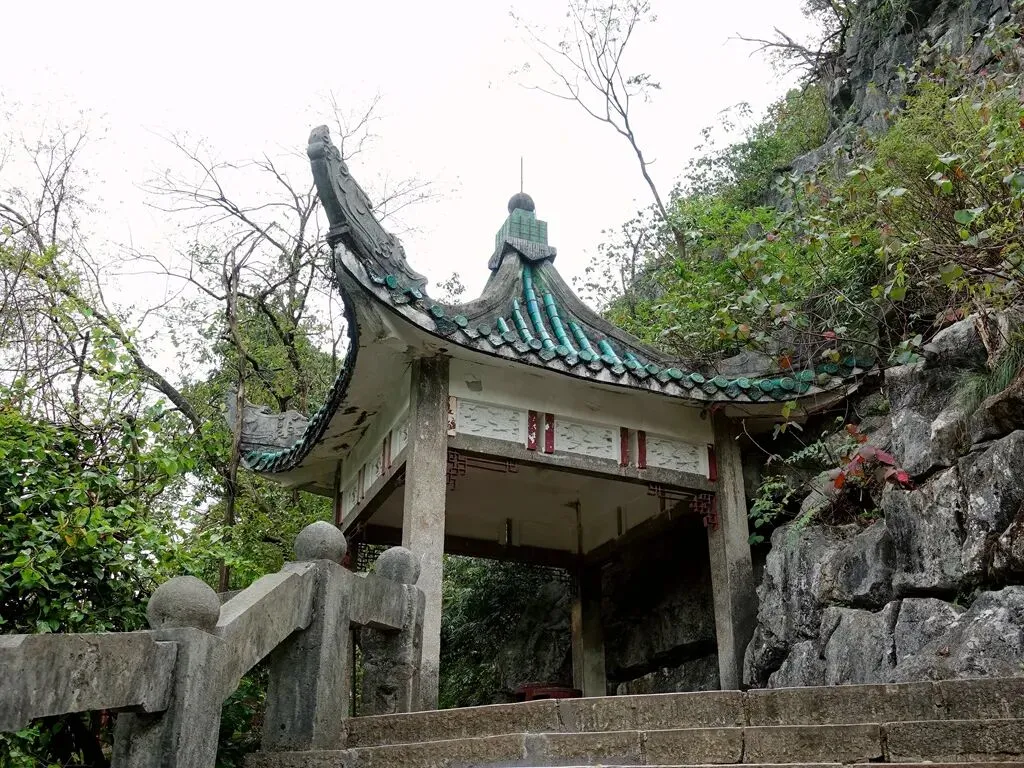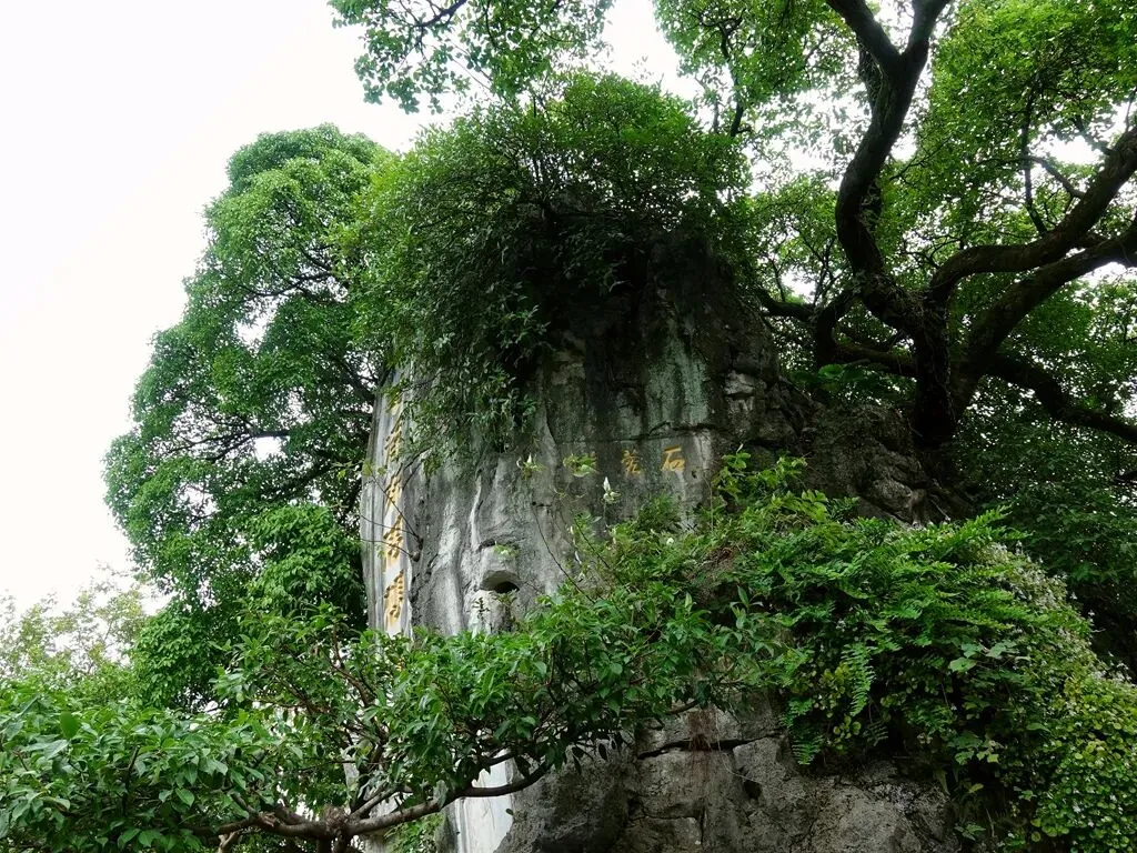 在灵剑溪和小东江交汇处附近,是七星景区的花桥大门,旁边的石柱峰是桂林最小的山,石峰上有株古榕树,故有一树遮一山的奇景。从花桥大门往桂海碑林方向走,经过月牙山麓的台阶,有岔路口可以登顶月牙山,下坡后拐弯突然看到龙隐洞,相传千年潜龙曾隐居于此,一朝破壁而飞入云霄,洞顶的石槽酷似腾龙留下的痕迹,洞壁上的众多碑文更是让人惊叹。桂海碑林位于月牙山西南麓的山体凹陷处,汇聚了大量的碑文题刻。自隋至清共有石刻220余方,是桂林摩崖石刻最多最全的地方。 正所谓:汉碑看山东,唐碑看西安,宋碑看桂林。若是有喜欢书法、碑文和诗词的人来此,定会觉得无比美妙。