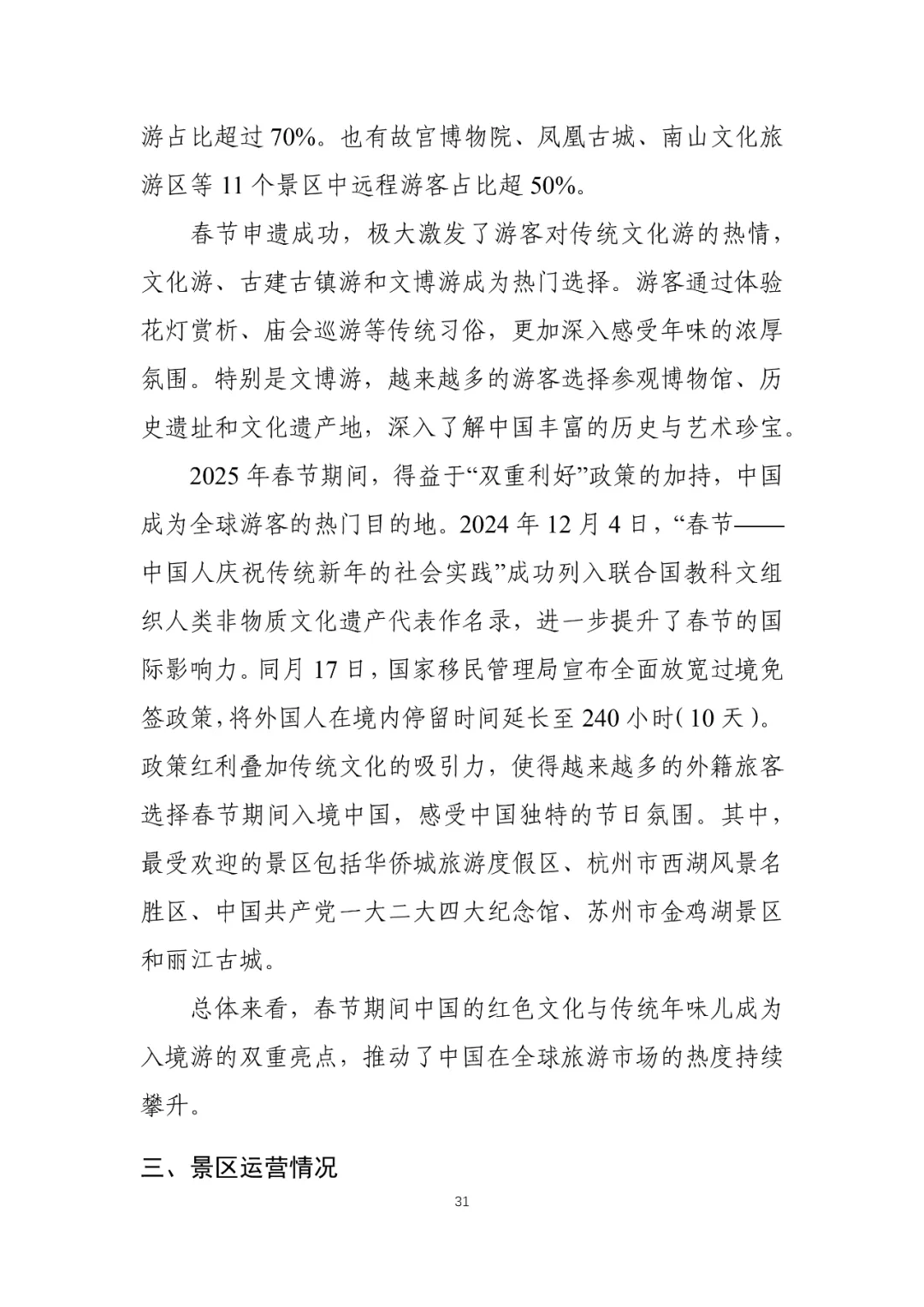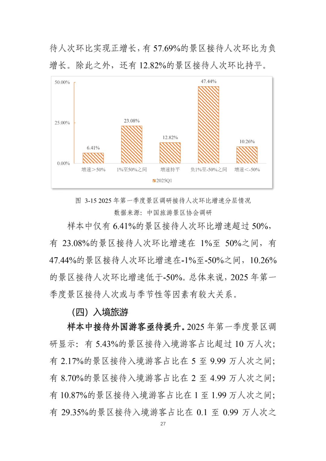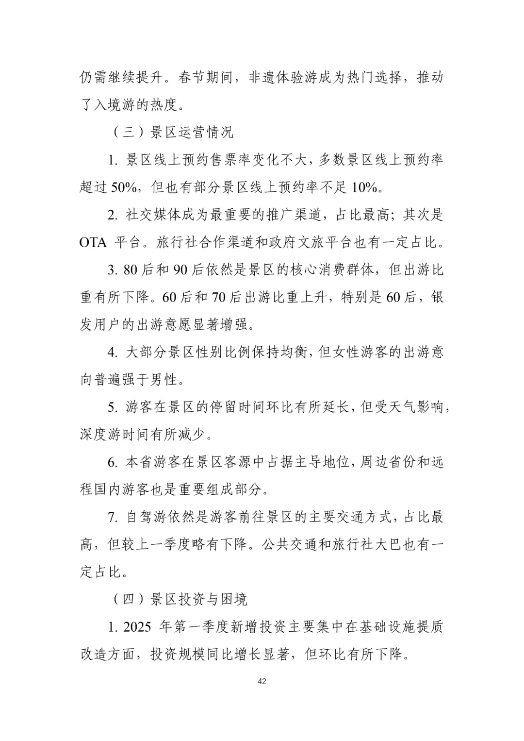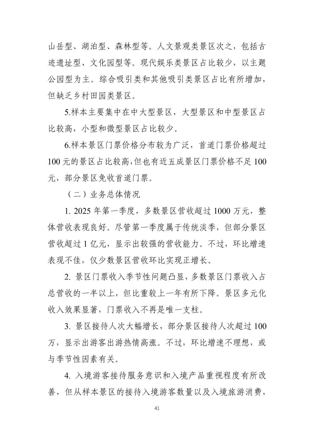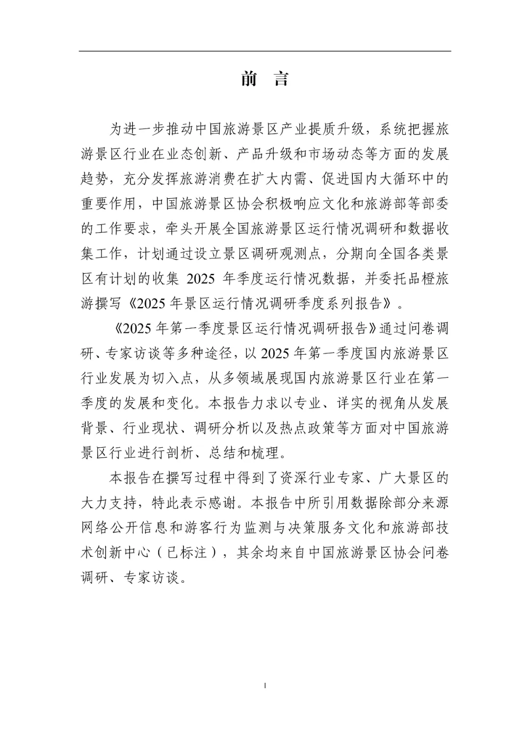 您现在的位置是:首页 > 国内旅游目的推荐 > 正文 国内旅游目的推荐 2025年第一季度景区运行情况调研报告 admin2026年03月03日 20:08:48国内旅游目的推荐1 2025年第一季度景区运行情况调研报告资料来源丨中国旅游景区协会©版权声明:本文版权及观点属原作者所有,本平台只做交流分享,如有侵权请及时联系我们,我们将第一时间删除,转载请注明作者及原出处。 转载请说明来源于"旅荐网",部分内容转载自网络,如有侵权请联系qlwl@foxmail.com删除 本文地址:https://www.15386.cn/post/131691.html 上一篇 女神节宠粉! 乐山出发,免票景区+路线全攻略! 相关文章 女神节宠粉! 乐山出发,免票景区+路线全攻略! 拆掉景区围墙,拉近人心距离 4A景区居然免费开放 你凭什么这么霸气 镇江这个景区,女性免费入园! 中国旅游景区发展报告便览(2023-2024年) 三孔景区部分演艺活动暂停 4A景区居然免费开放 你凭什么这么霸气 免费开放!南京两大景区官宣! 文旅景区焕新:解锁新需求,引爆新热潮 武威沙漠景区|三八妇女节专属福利活动|太给力了! 发表评论 取消回复 评论列表 这篇文章还没有收到评论,赶紧来抢沙发吧~