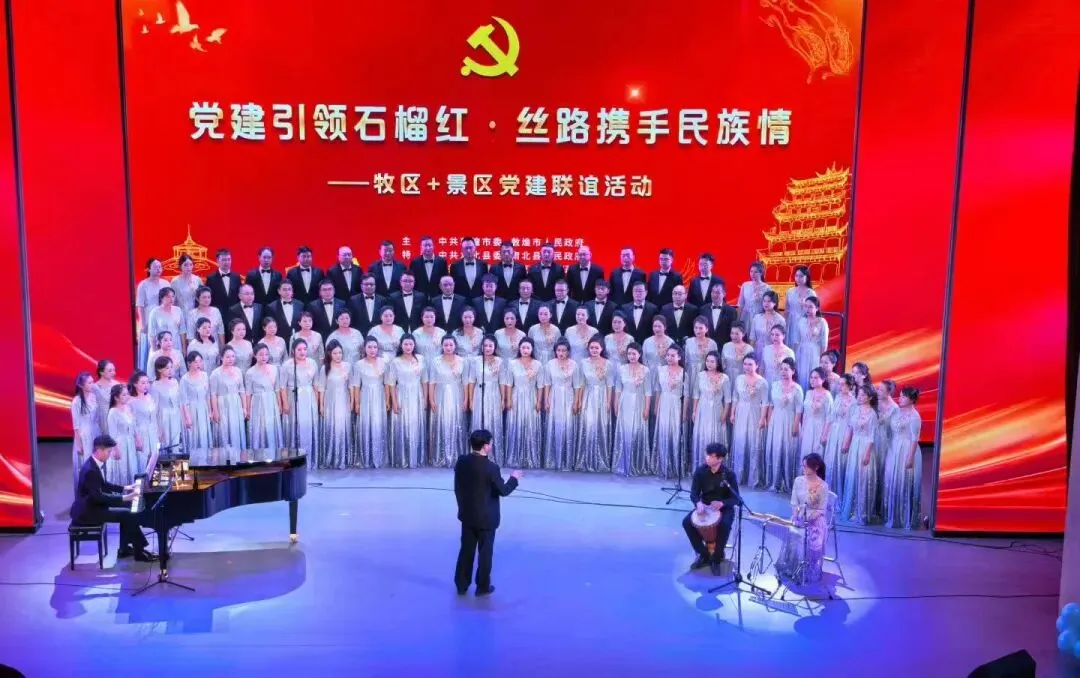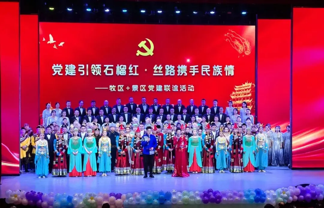 党心连民心,丝路一家亲。从演职人员同台排练、默契协作,到各族群众共赏盛宴、沉浸式体验多元文化,再到现场互动交流、情感共鸣,此次“牧区+景区”党建联谊活动,以文化互动为纽带,让各民族群众在空间上相聚、文化上相知、情感上相亲,真正实现“旅游搭台、文化唱戏、民族连心”的良好成效。大敦圈建设的生动实践,成为各民族广泛交往、全面交流、深度交融的鲜活场景,让“丝路携手民族情”的深刻内涵在互动交融中落地生根、开花结果。这既是党建引领下文旅融合的创新探索,更是各民族手足相亲、守望相助的情感盛会。