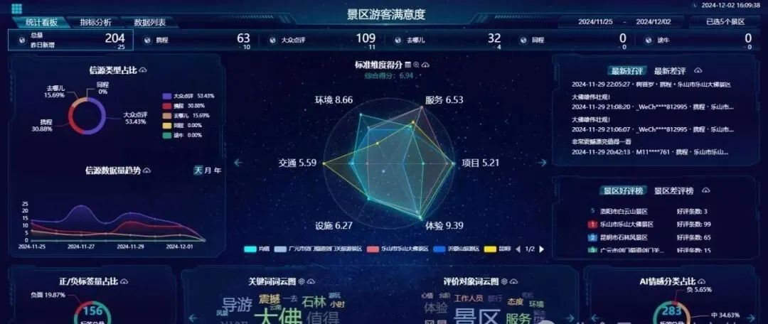 景区作为旅游的主要产品和服务提供方,应积极引入物联网监测、大数据分析、智能导览等新技术与新设备,以提升景区运营效率,提高运营效果。如使用云旅游大数据分析平台获取客流、消费、舆情等全方面的旅游数据,根据分析结果进行科学决策、实现实时调度,以提升管理效率和游客体验。