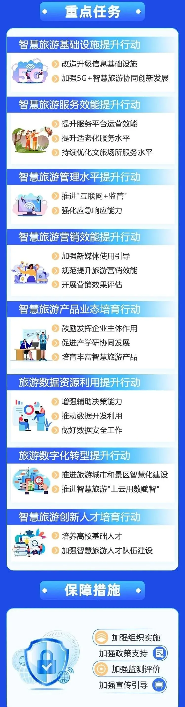 结合2024年5月国家发布的《智慧旅游创新发展行动计划》,智慧旅游发展的重点任务可概括为: