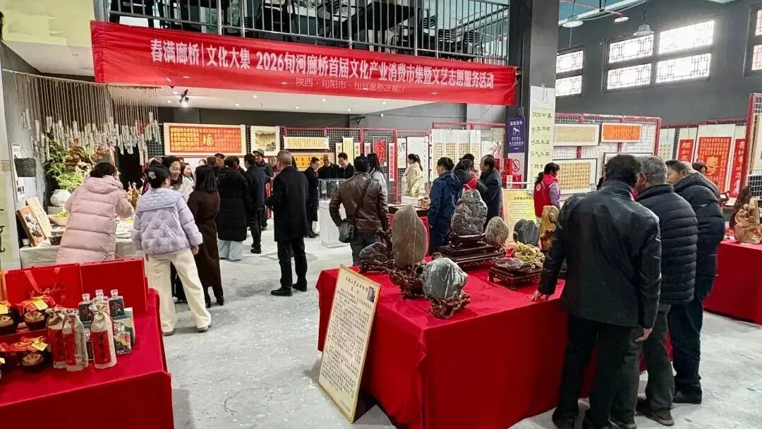 活动内容:文化大集在廊桥一至三楼联动呈现沉浸式的文化体验,二楼集中展示百余幅书法、国画、油画作品,陶艺、奇石、根雕、鸡血石等旬阳特色工艺美术品及非遗产品;楼梯打造花灯展示;三楼打造动态互动区。此外,还有文化大集消费增粮票、猜灯谜赢粮票、乐购挑战赢好礼、打卡互动领祈福带等诸多福利。