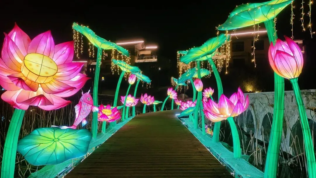 活动内容:布设大型主题灯组、中小型灯景及精致艺术花灯,串联成一条绵延达数公里的观灯路线,打造沉浸式光影矩阵,配套年味市集、文博展览、灯谜竞猜、拓印互动、非遗展演等业态,营造节庆浓厚氛围。