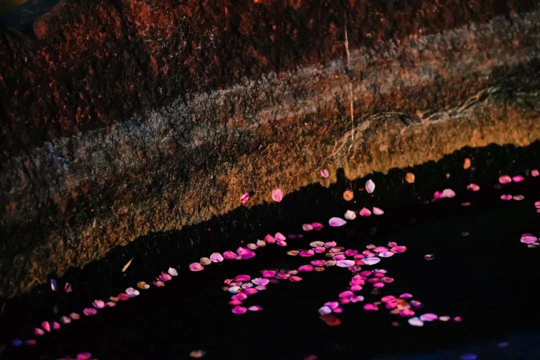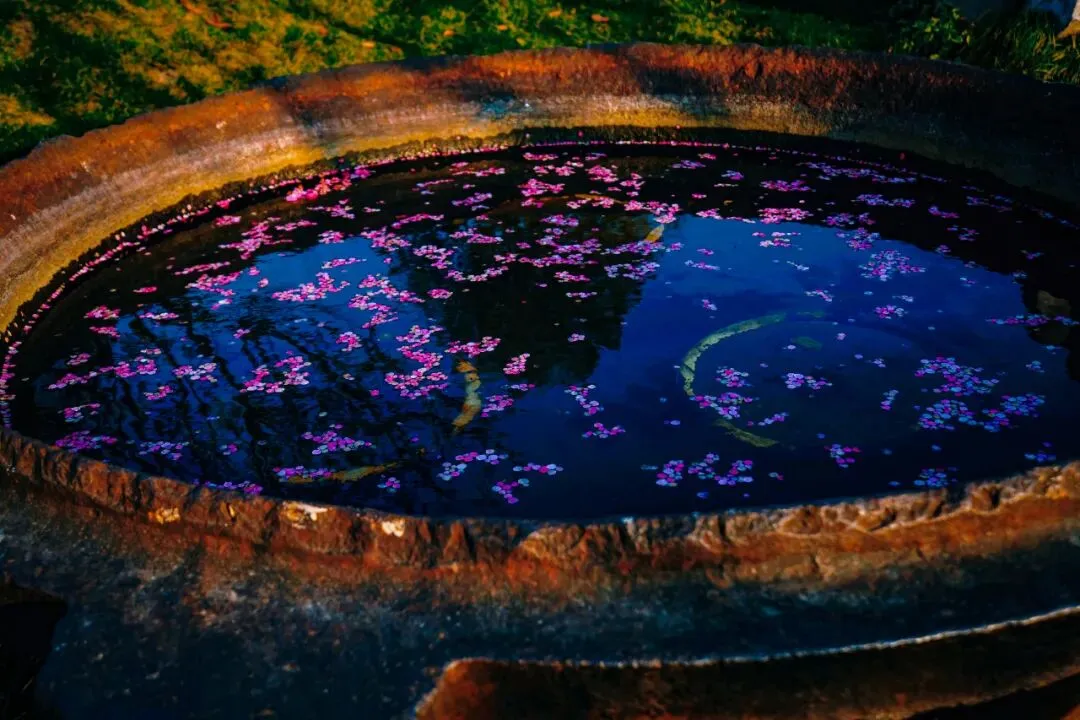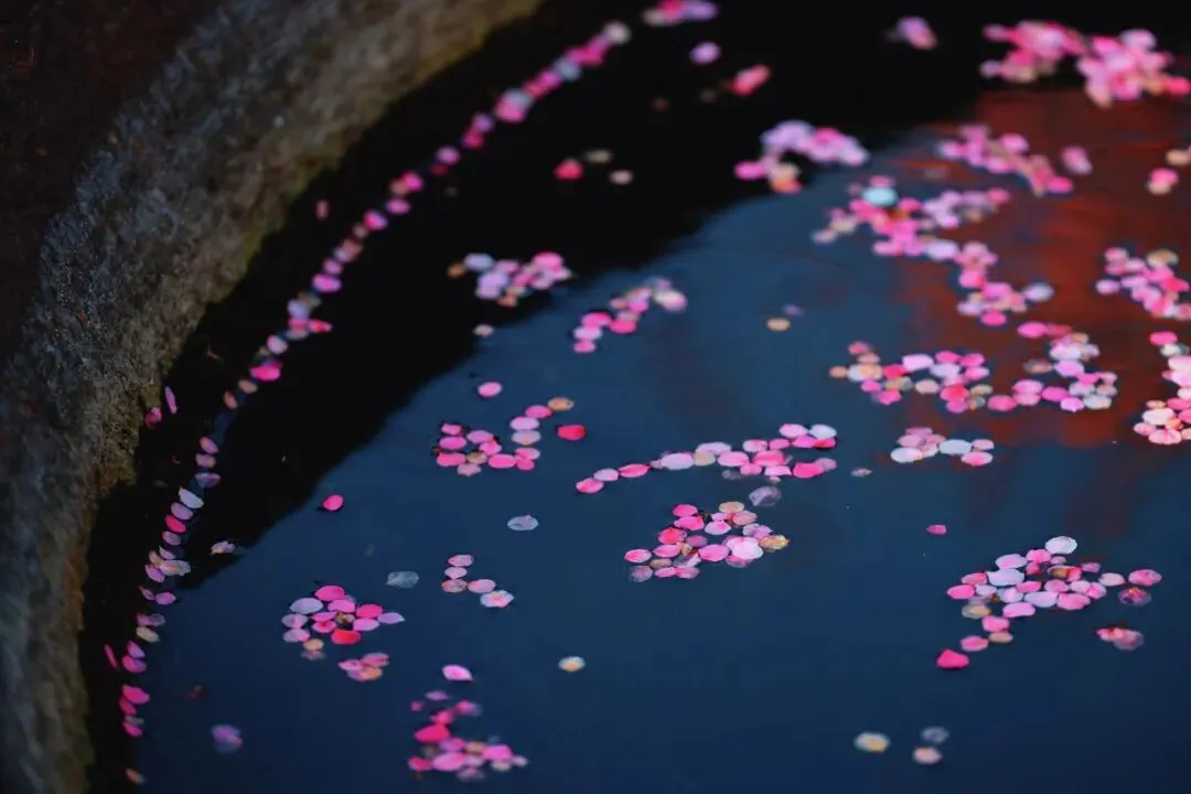 微风轻拂飘落在铁镬上的梅花 水面上泛起浅浅的涟漪 波纹粼粼的湖面上铺满洁白和粉艳 别有一番意境