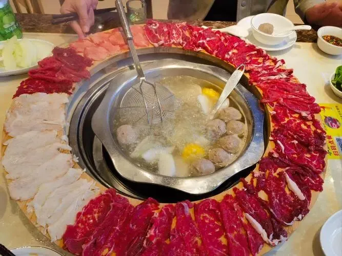 牛肉火锅要早到,现切现涮,七上八下就出锅,蘸普宁豆酱更顺。