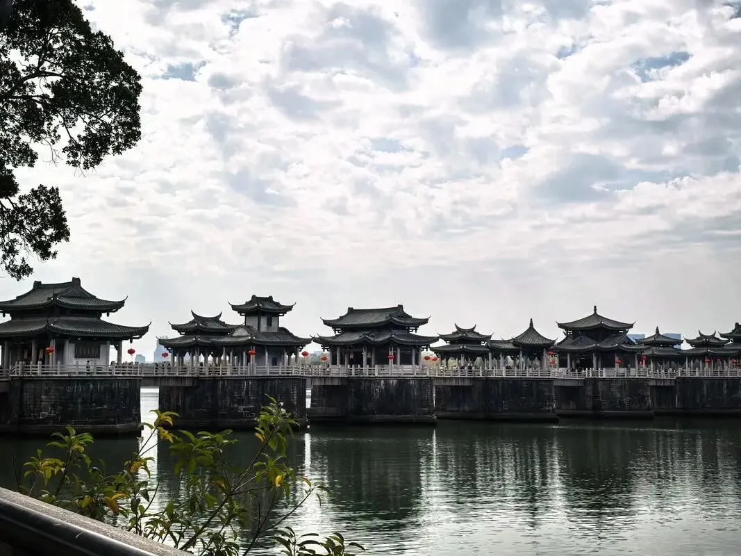 韩文公祠对岸看广济桥全景,水占一半更稳。