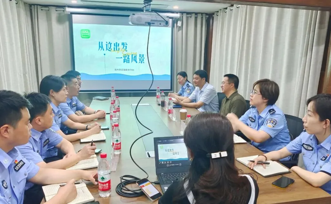 7月6日下午,扬州市公安局政治部副主任、宣传处处长王旭带队来景区融媒体中心考察交流。景区党工委副书记刘马根出席活动。